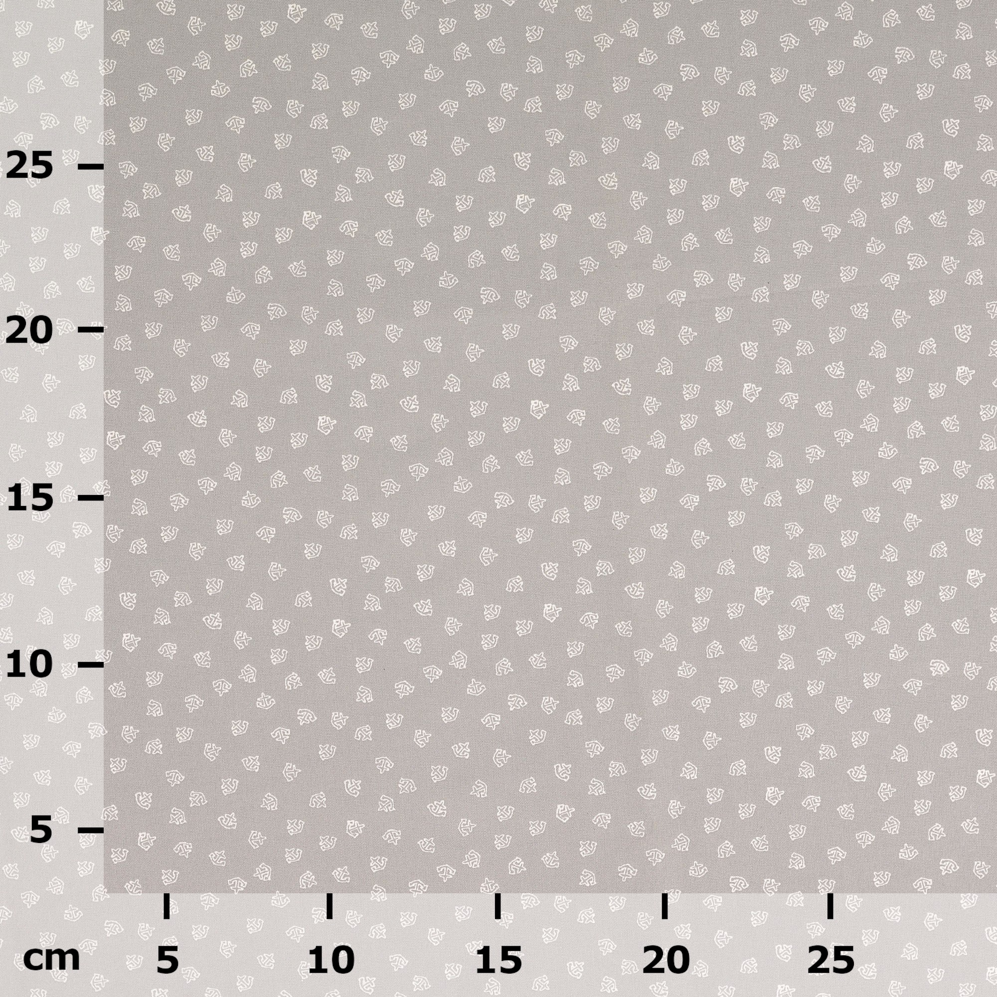 Baumwollstoff gemustert, Anker klein, grau/ weiß: