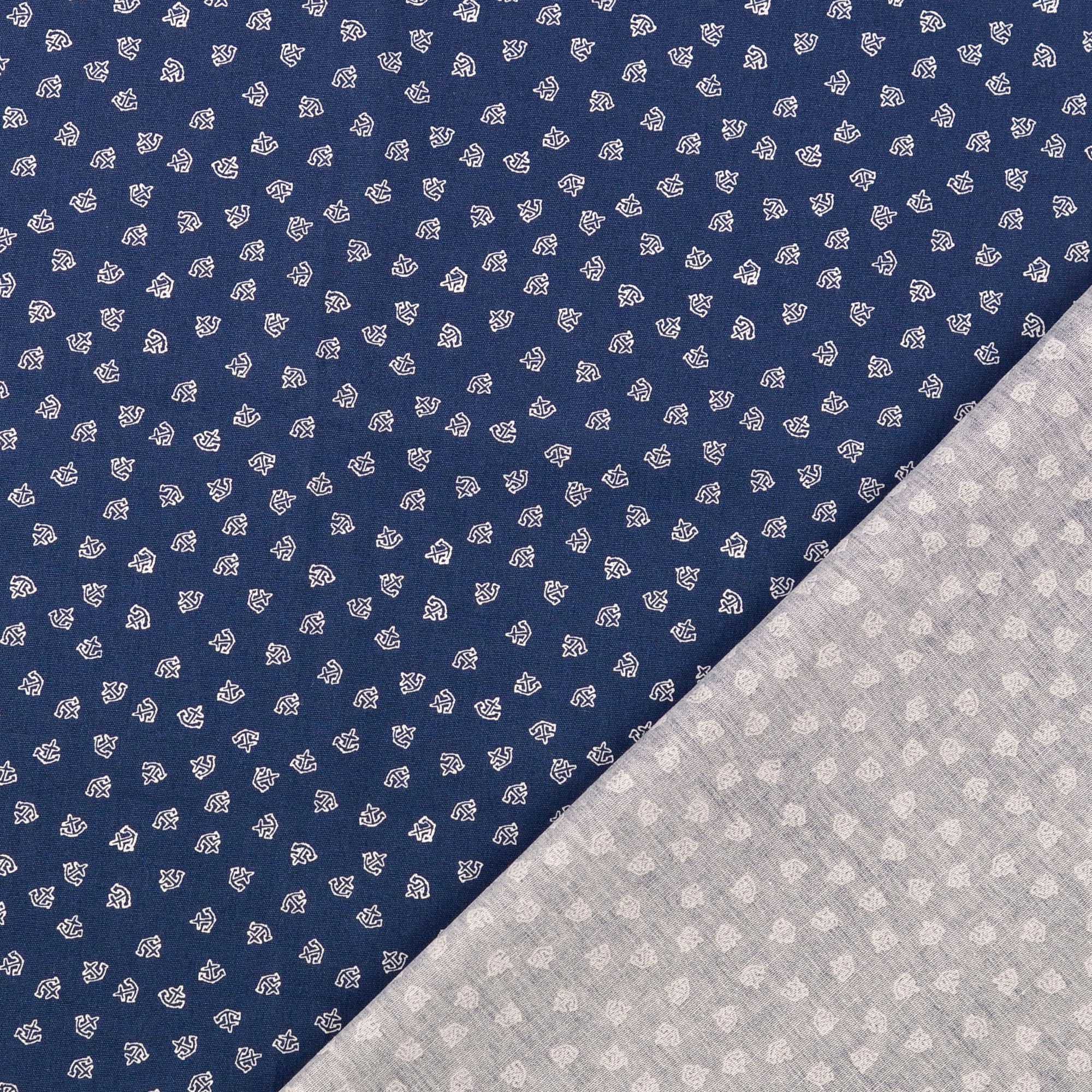 Baumwollstoff gemustert, Anker klein, marine/ weiß
