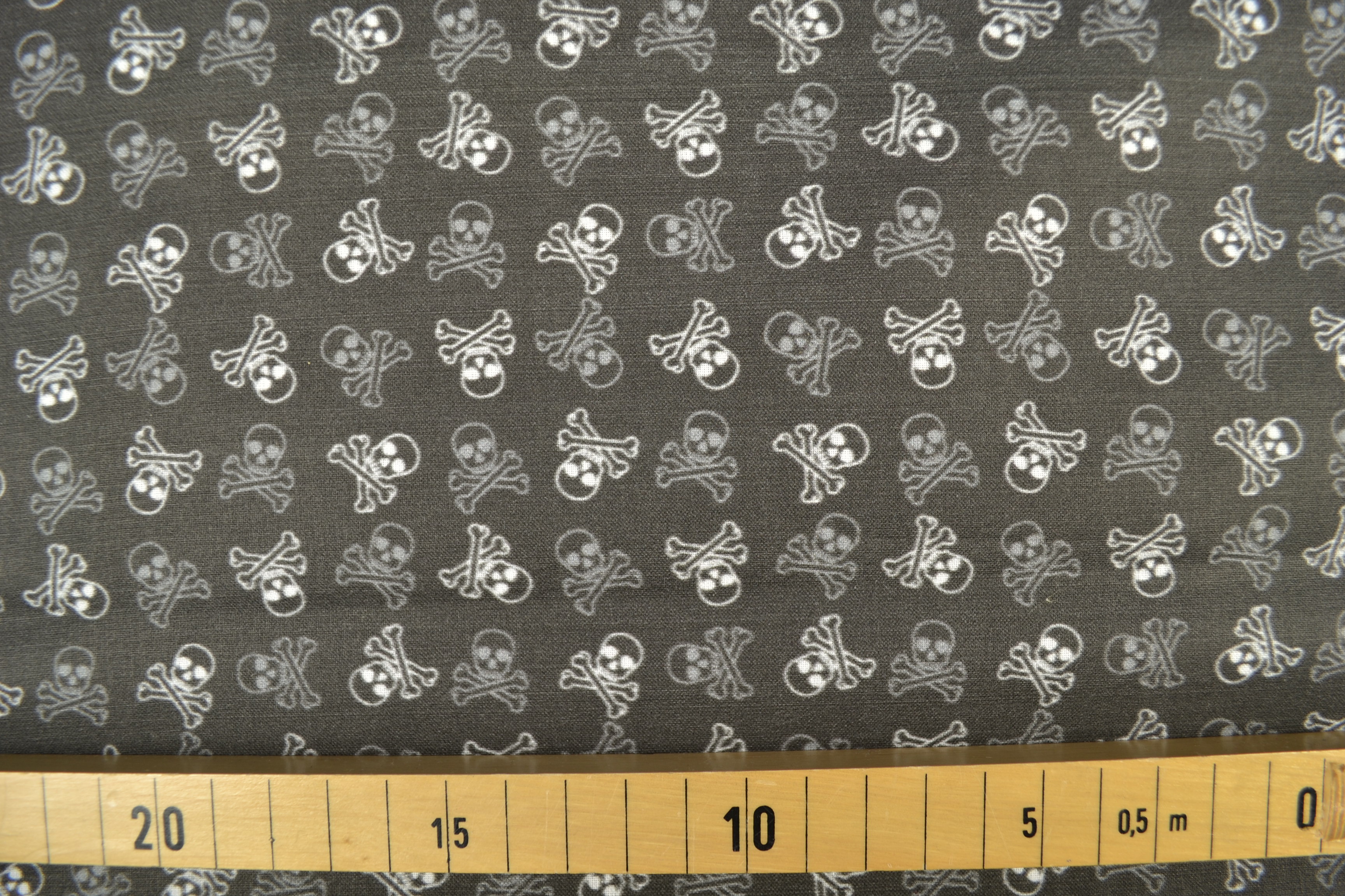 Baumwollstoff gemustert kleine Totenköpfe, schwarz/ weiß