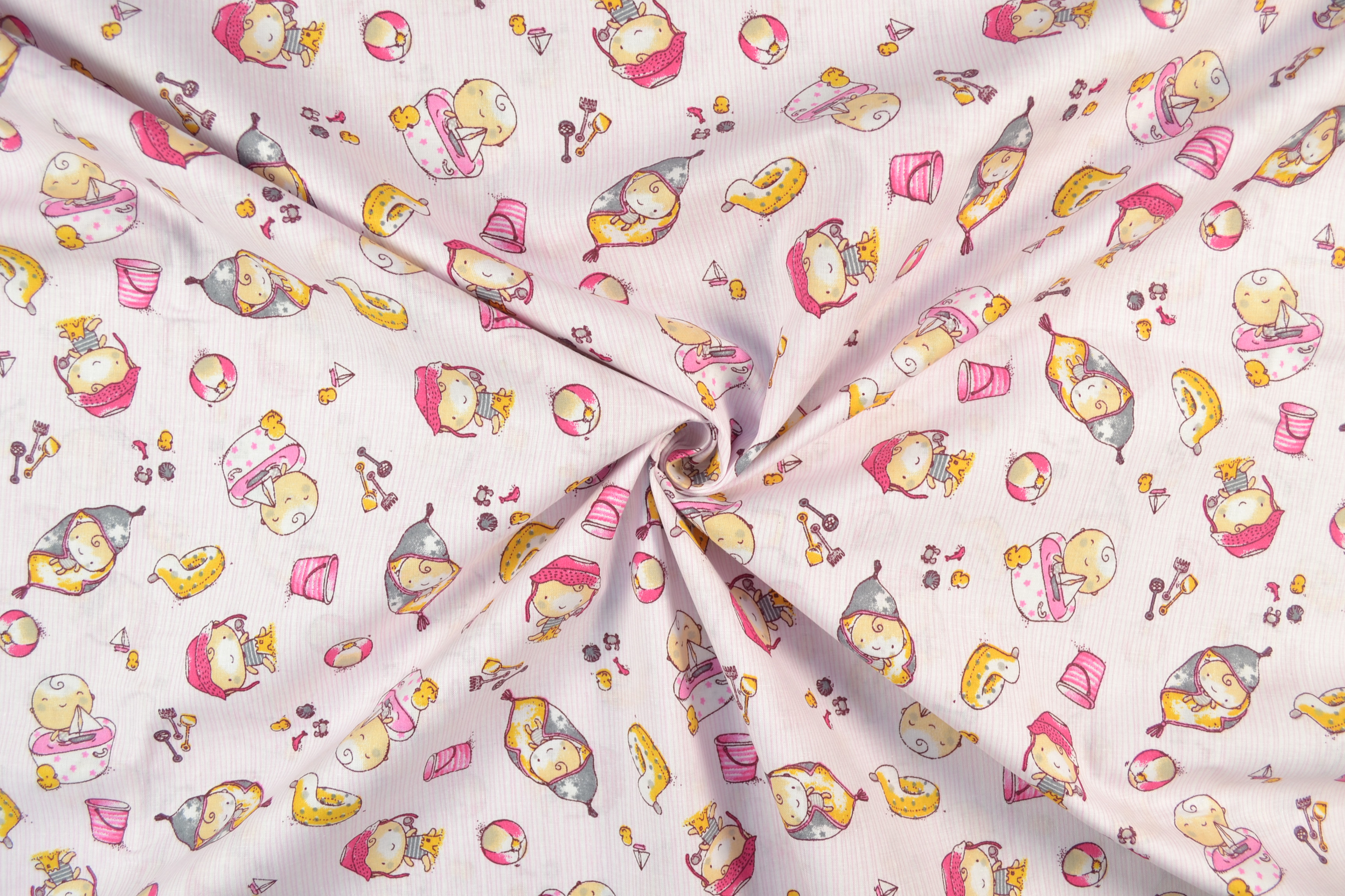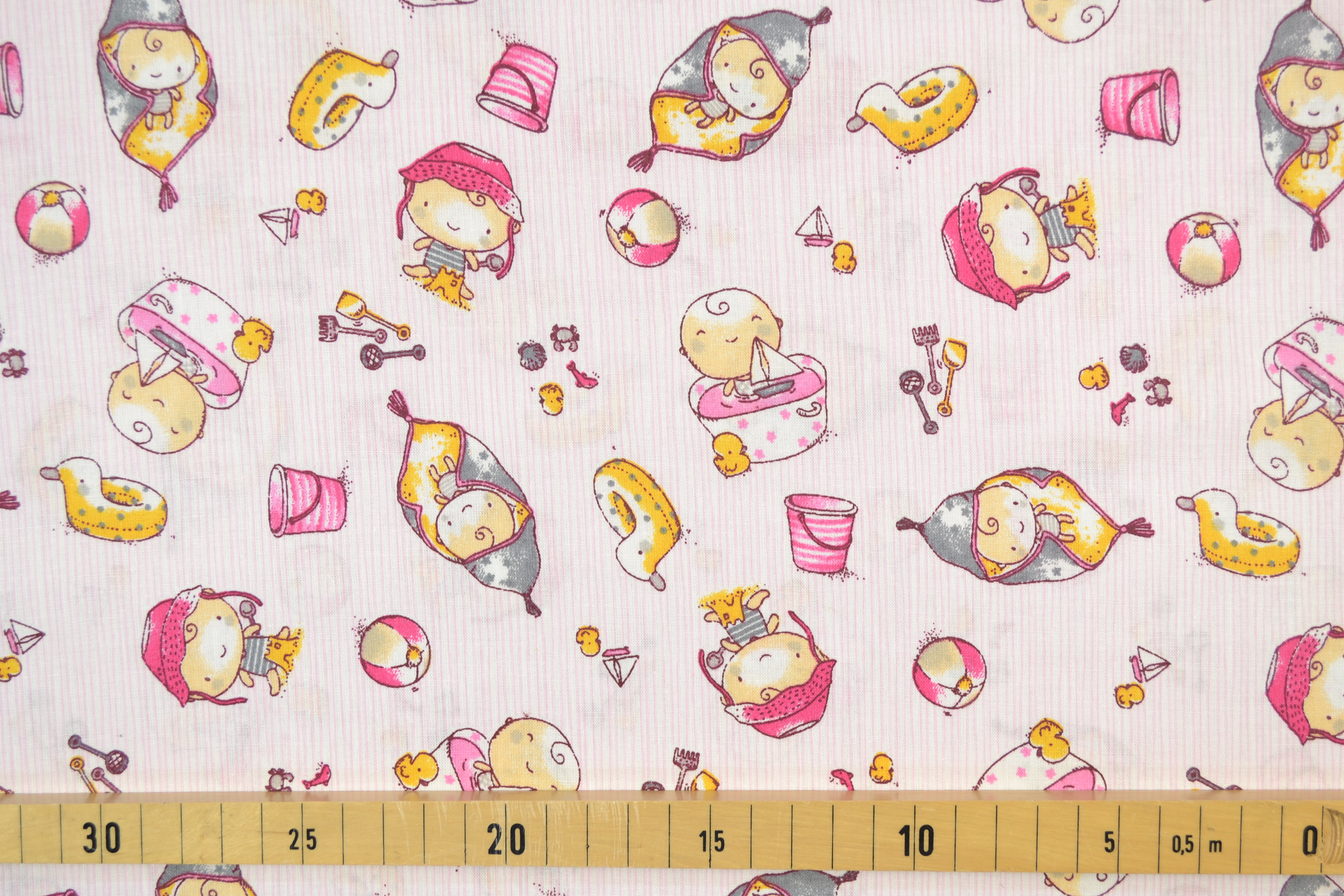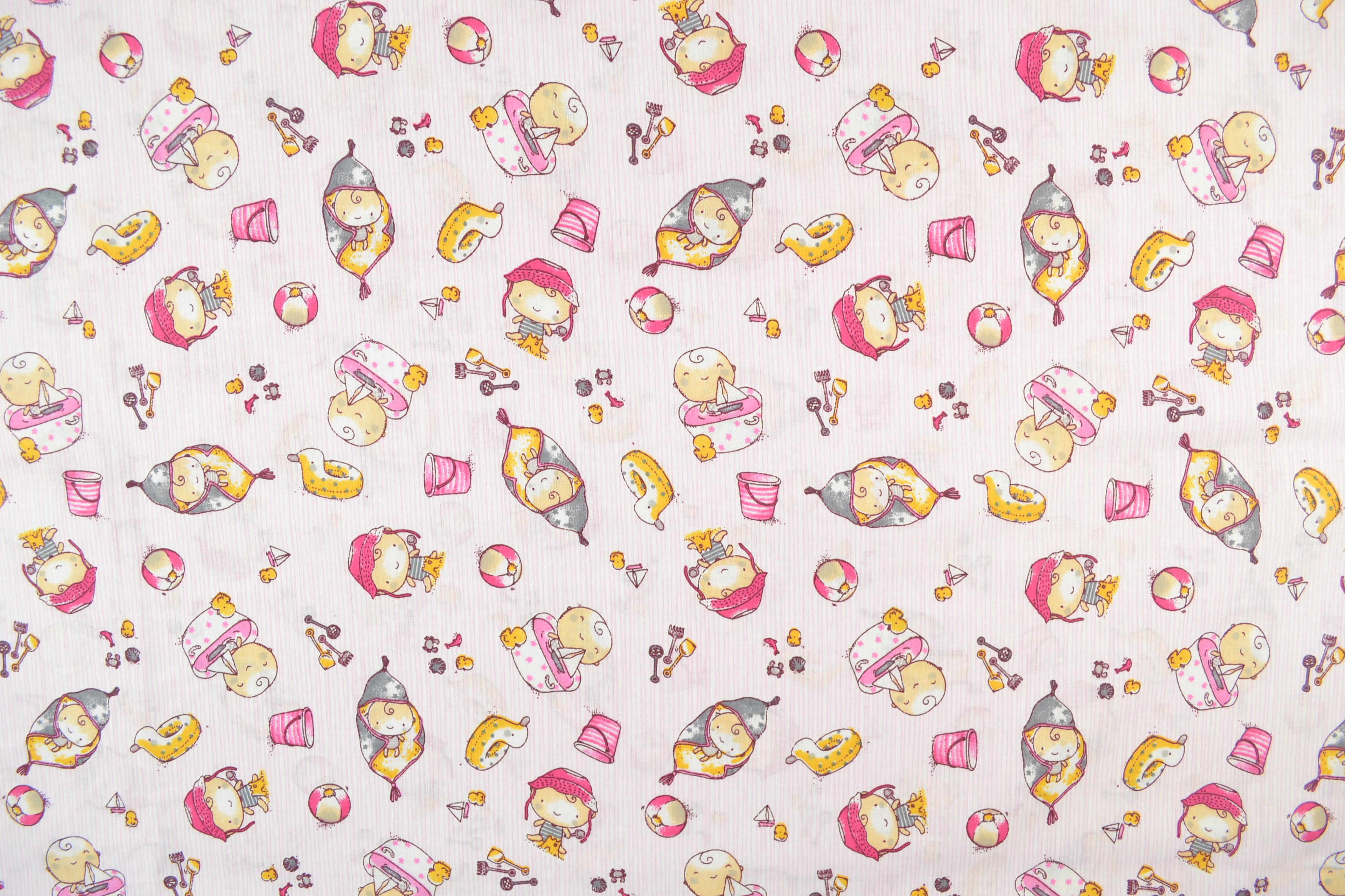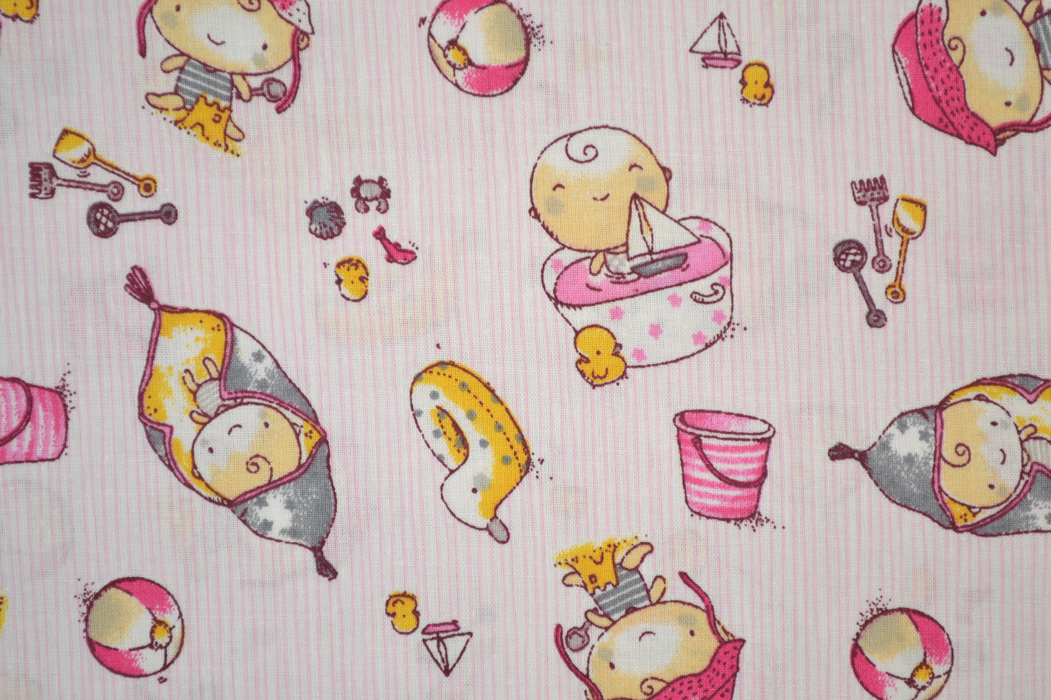 Baumwollstoff mit buntem Motiv, Babys rosa: