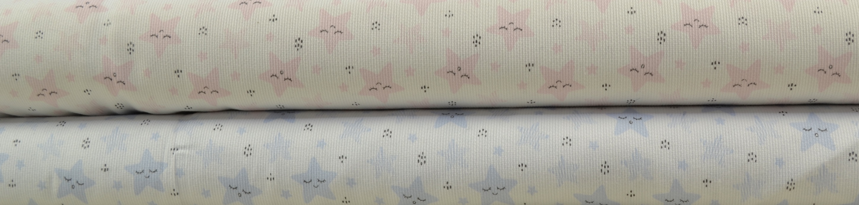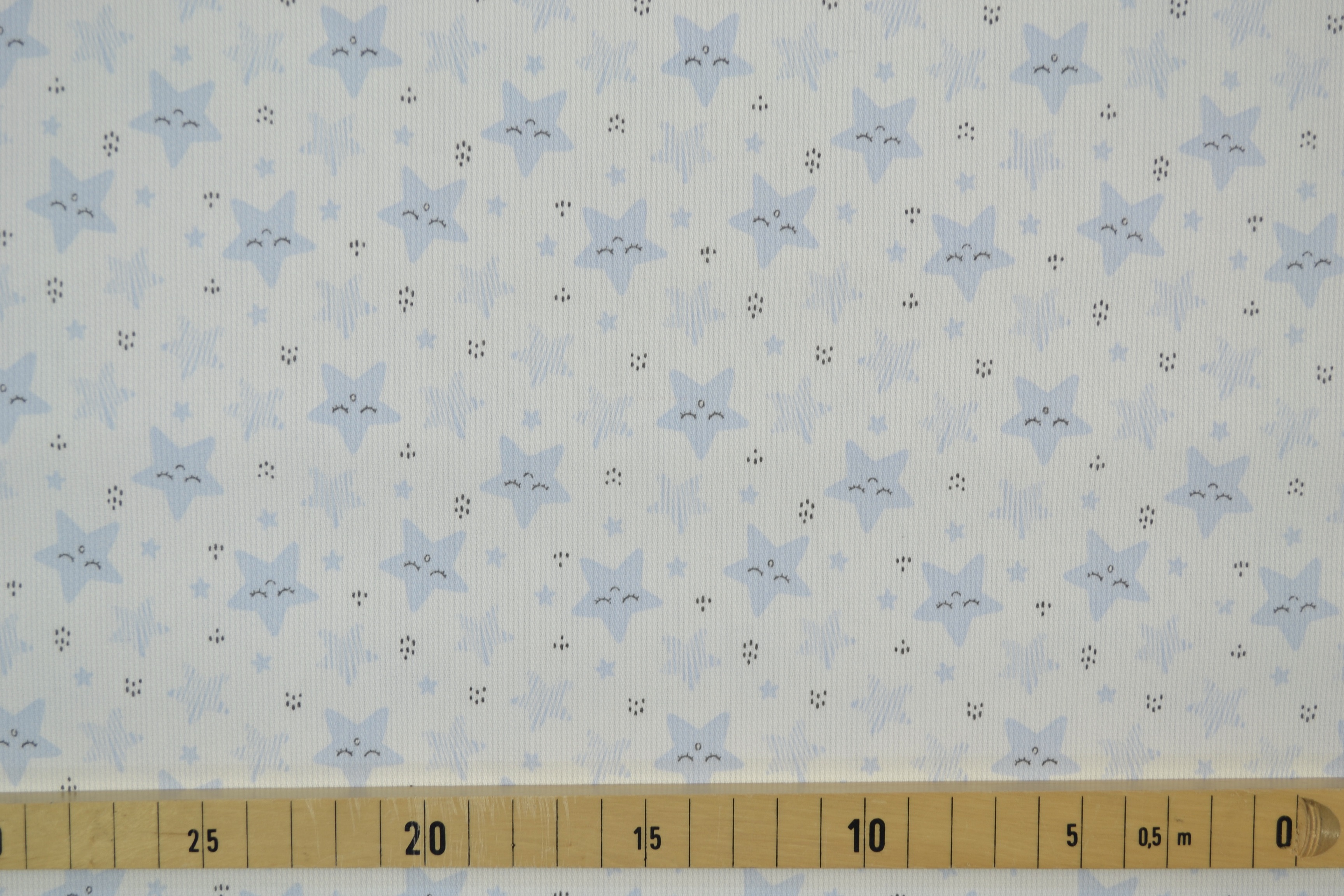 Baumwollstoff mit buntem Motiv, Sterne hellblau: