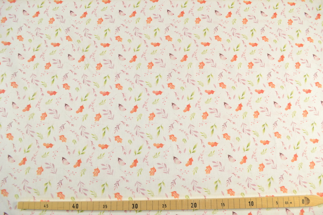 Baumwollstoff mit buntem Motiv, Blätter: