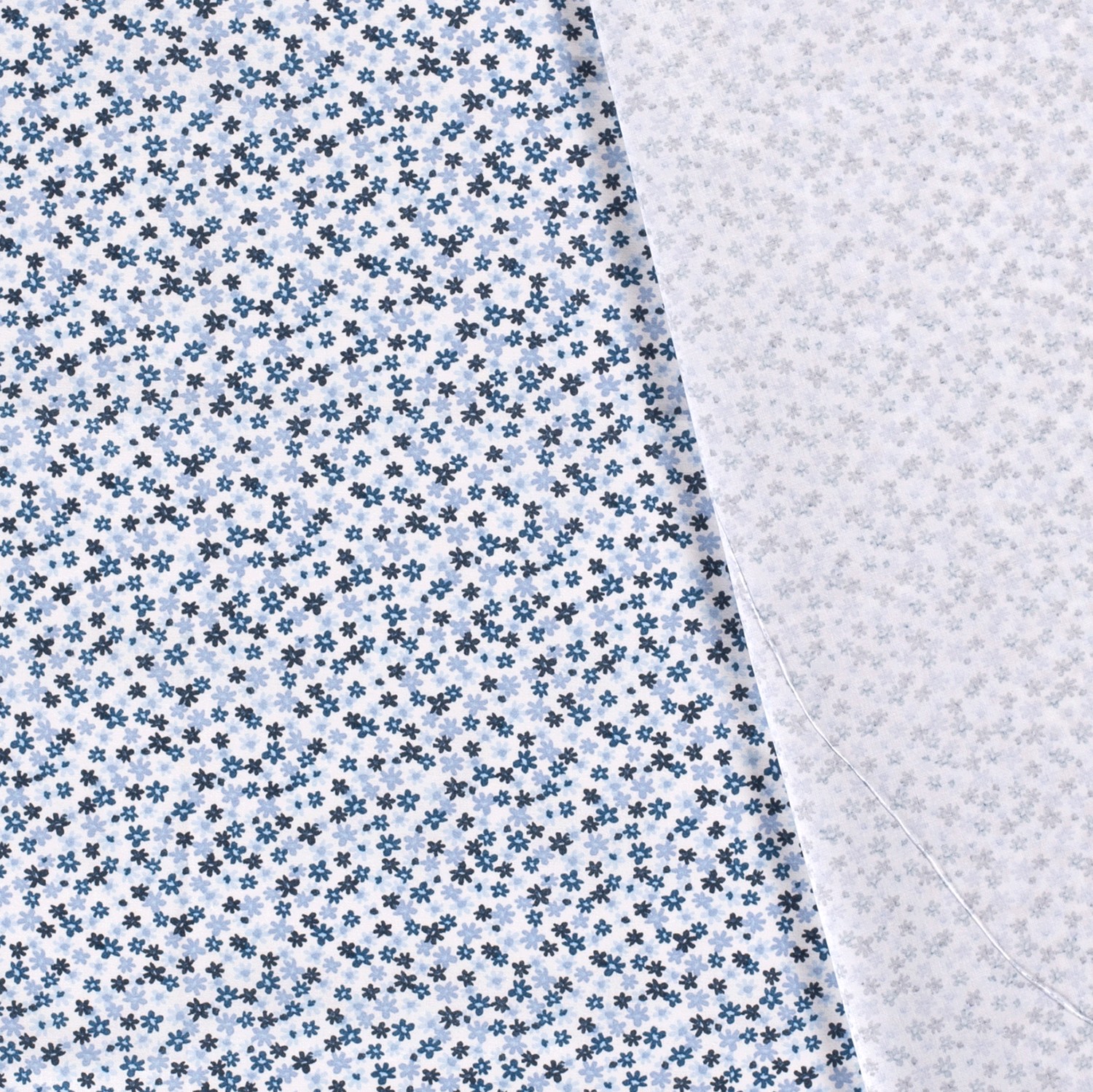Baumwollstoff Popeline Blumen, indigoblau