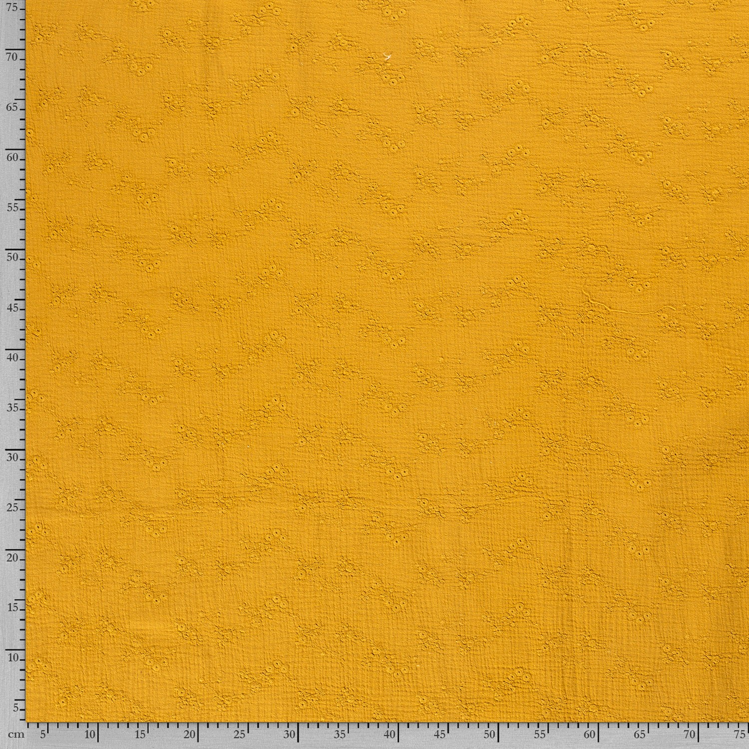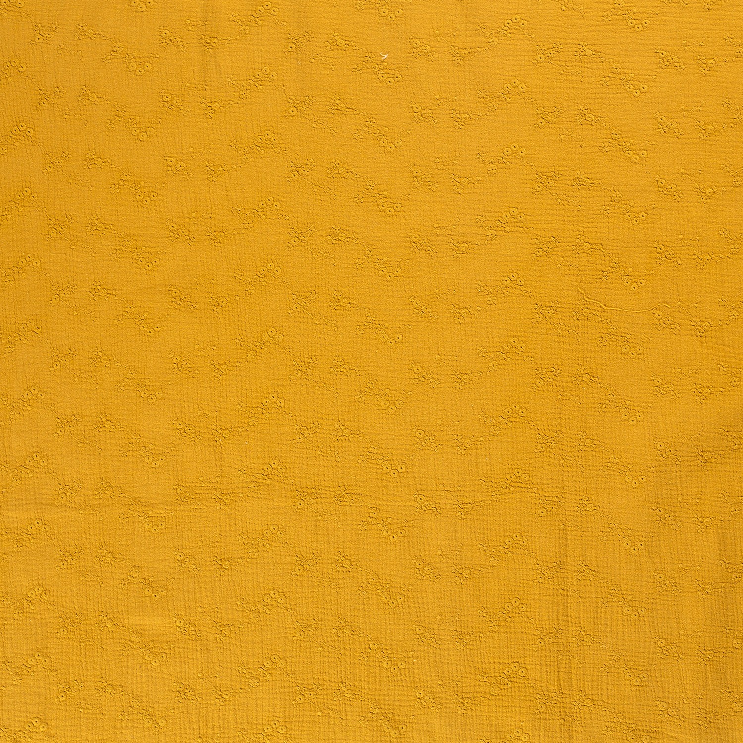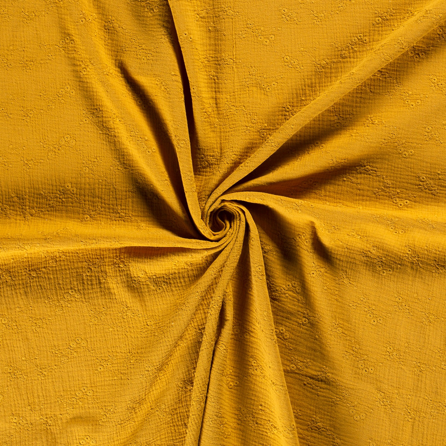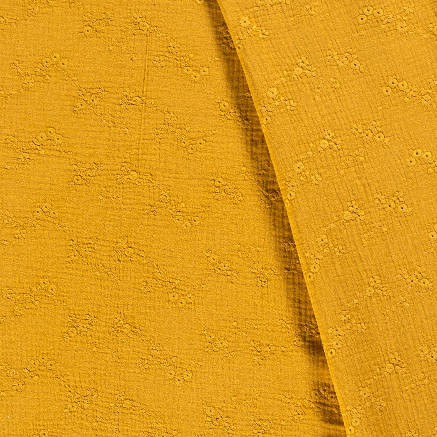 Produktinformationen "Musselin Stoff Bestickt Blumen, ocker"