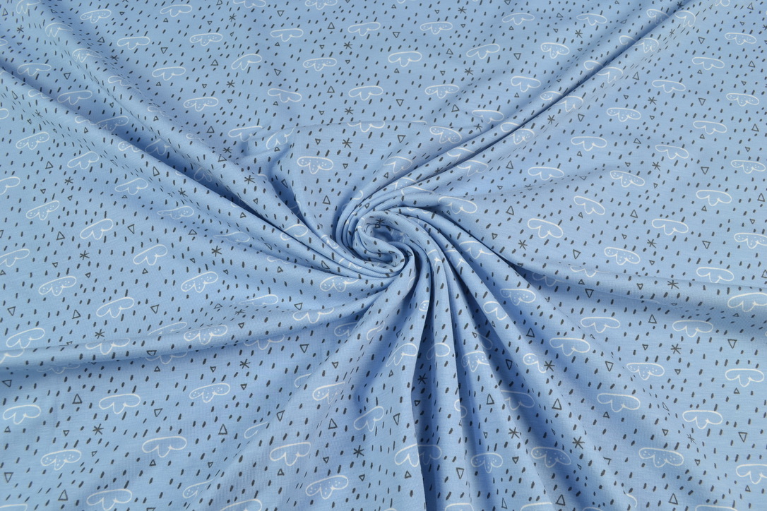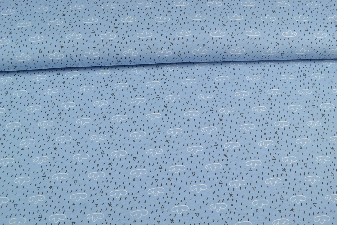 Organic Baumwoll Jersey Druck, Regenwolken blau