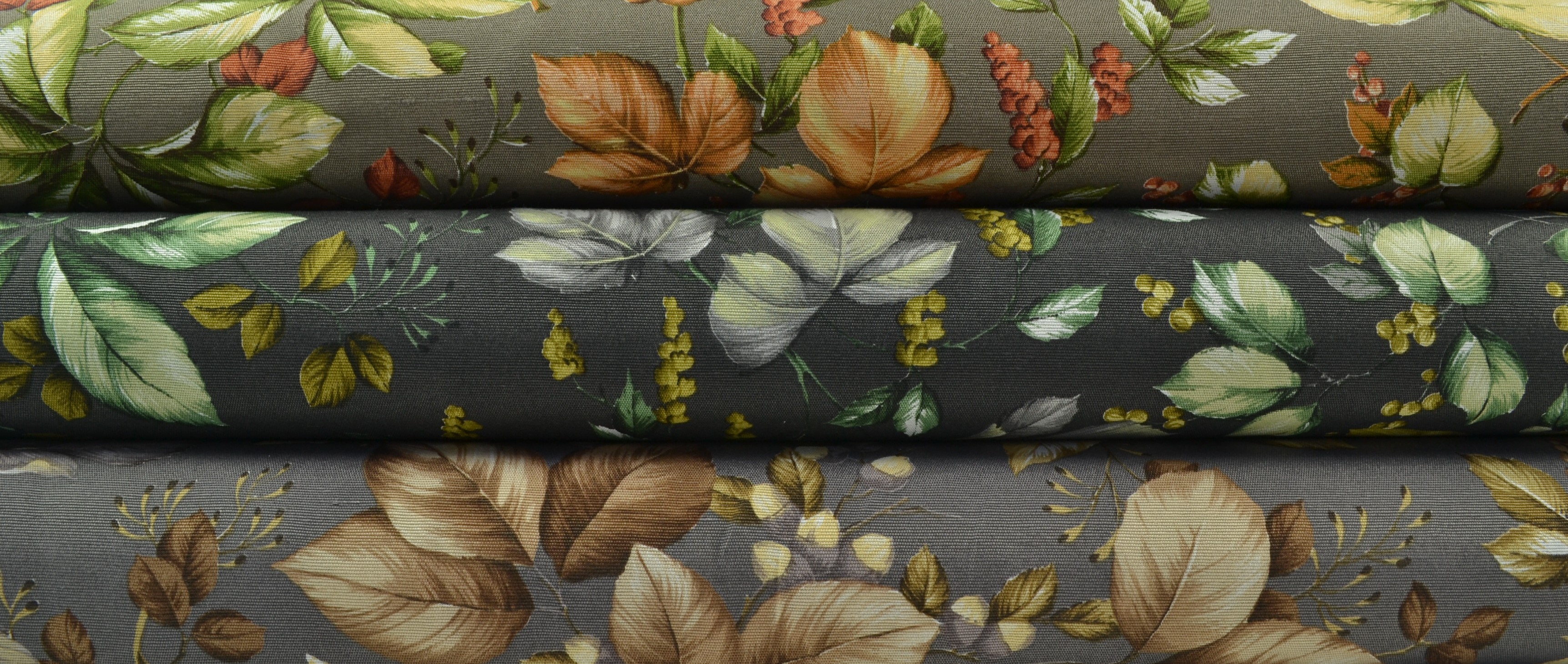 Canvas Deko Stoff Blättermix, graubraun: