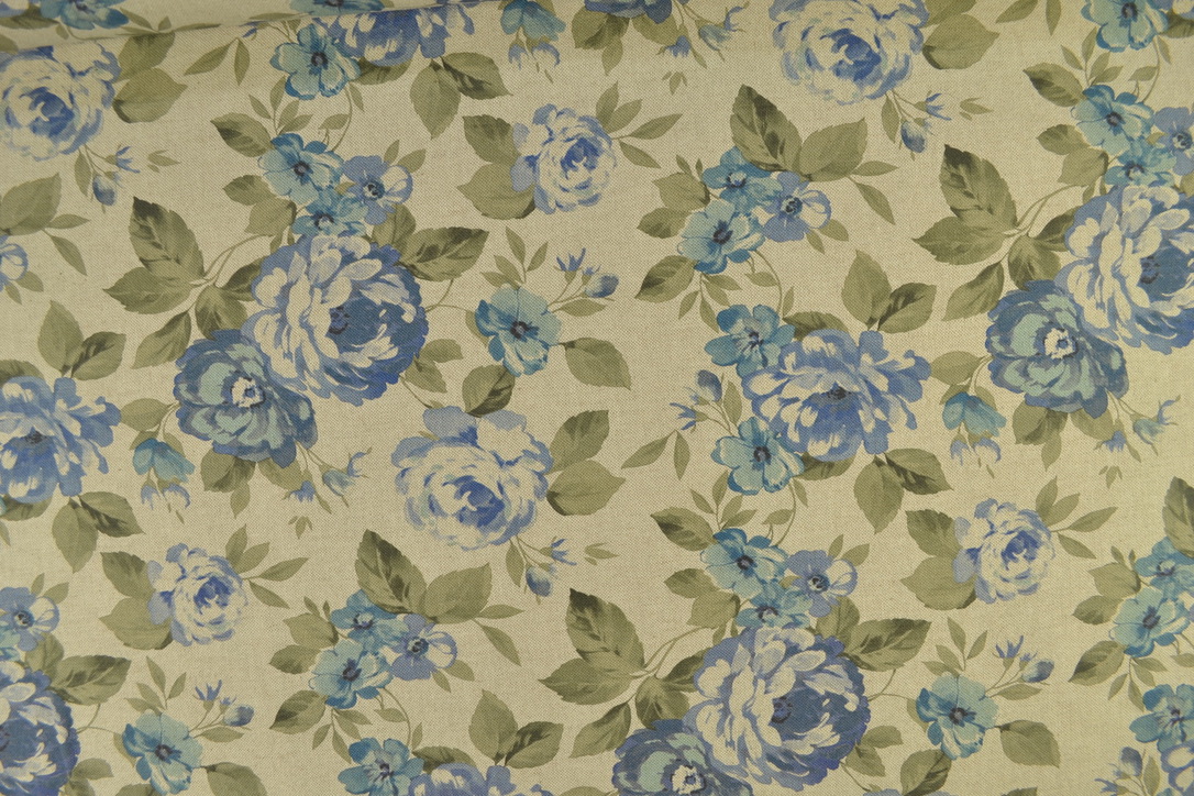 Produktinformationen "Canvas Deko Stoff Halbpanama Digitaldruck, große Rosen blau/ beige"