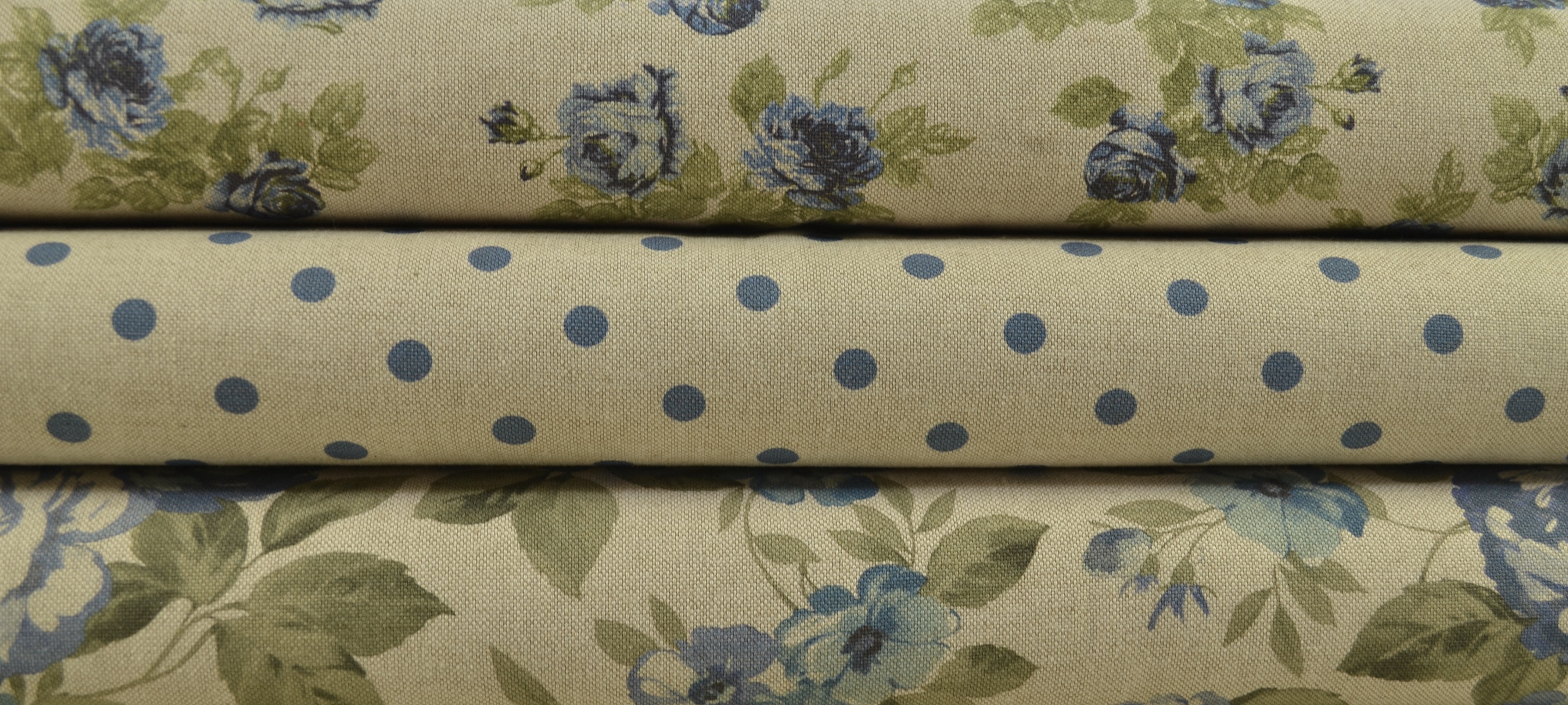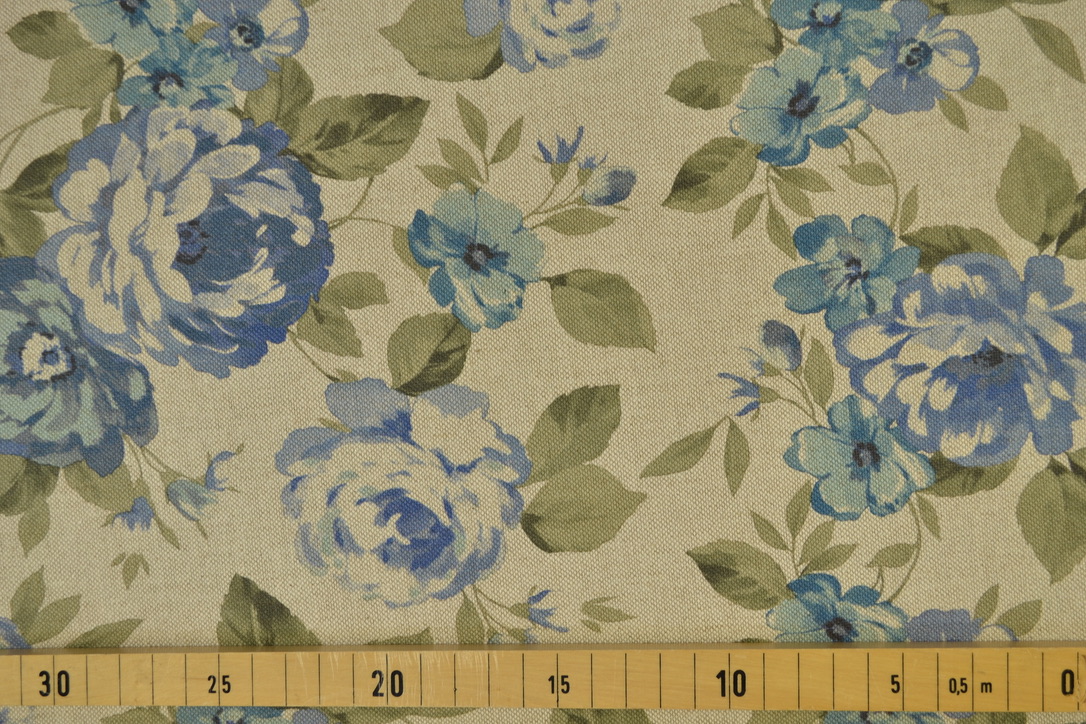Canvas Deko Stoff Halbpanama Digitaldruck, große Rosen blau/ beige