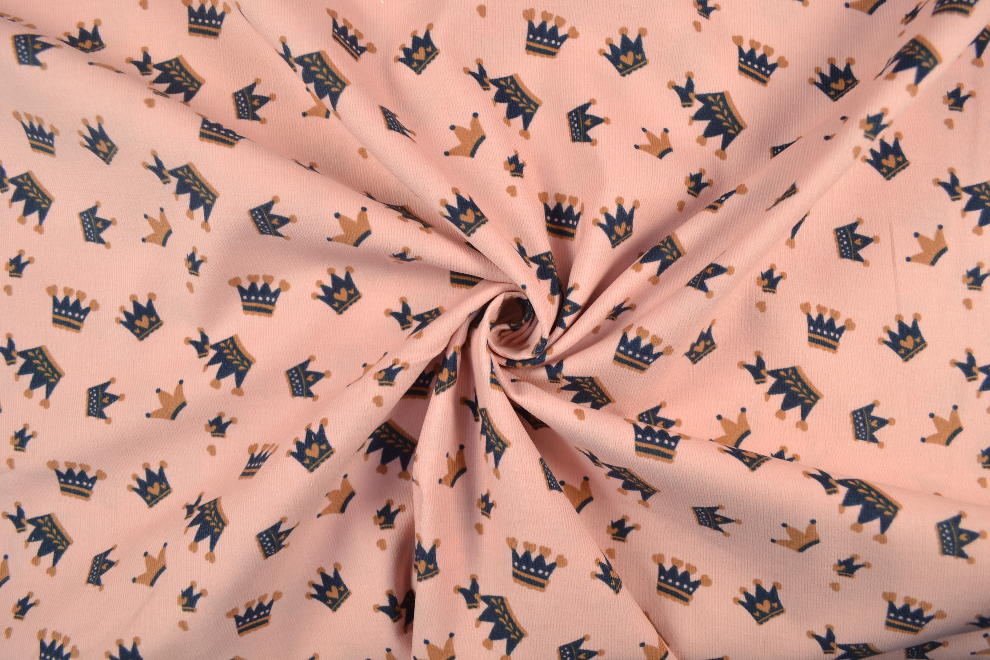 Produktinformationen "Feincord bedruckt Kronen, rosa"