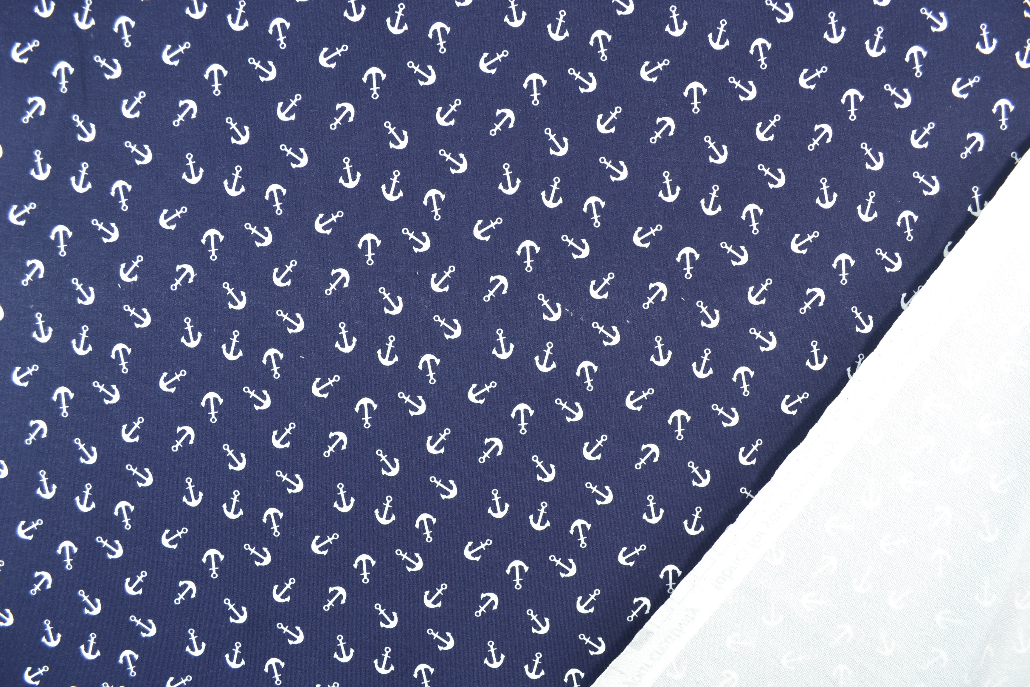 French Terry bedruckt, Anker marine