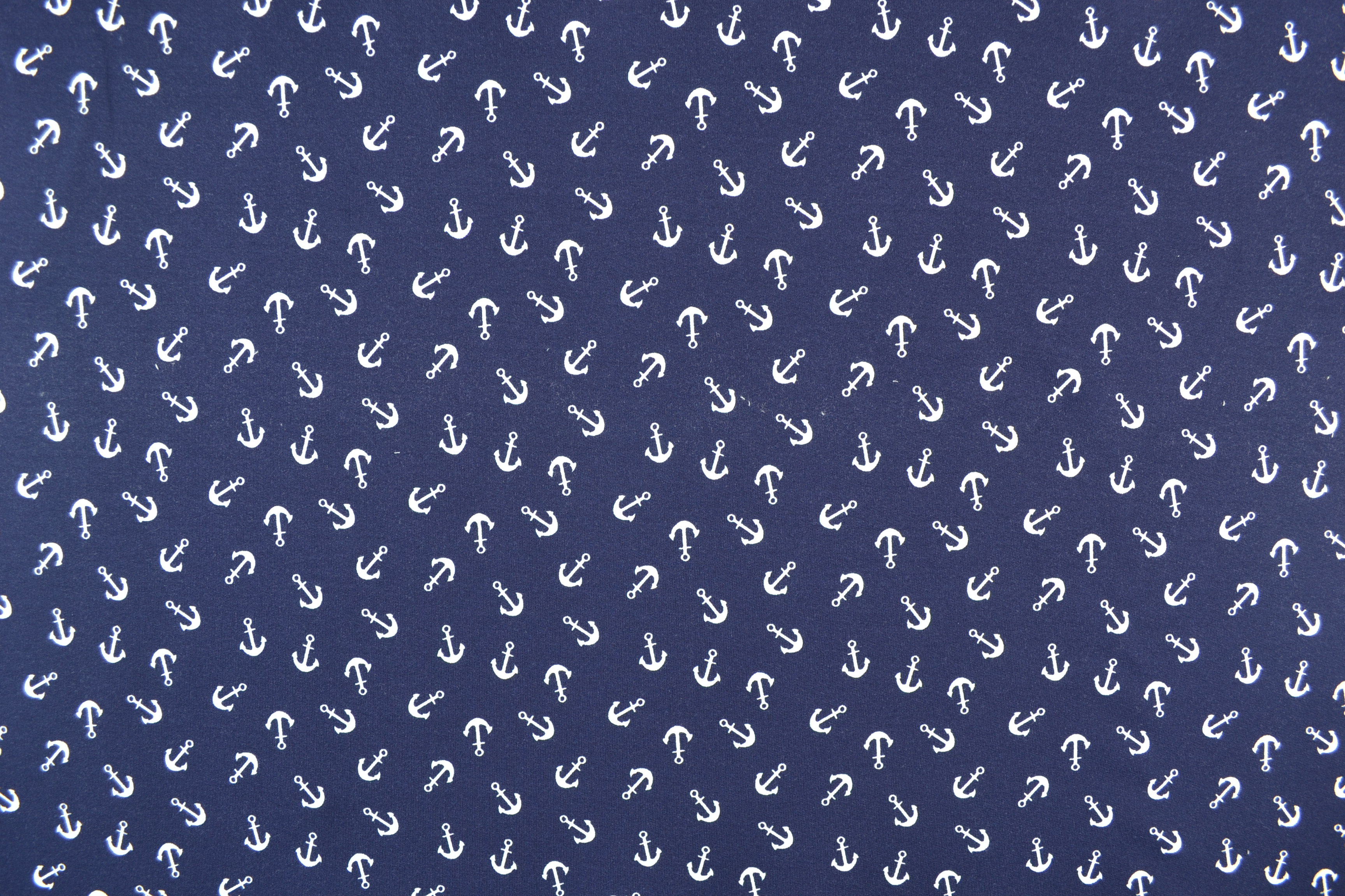French Terry bedruckt, Anker marine: