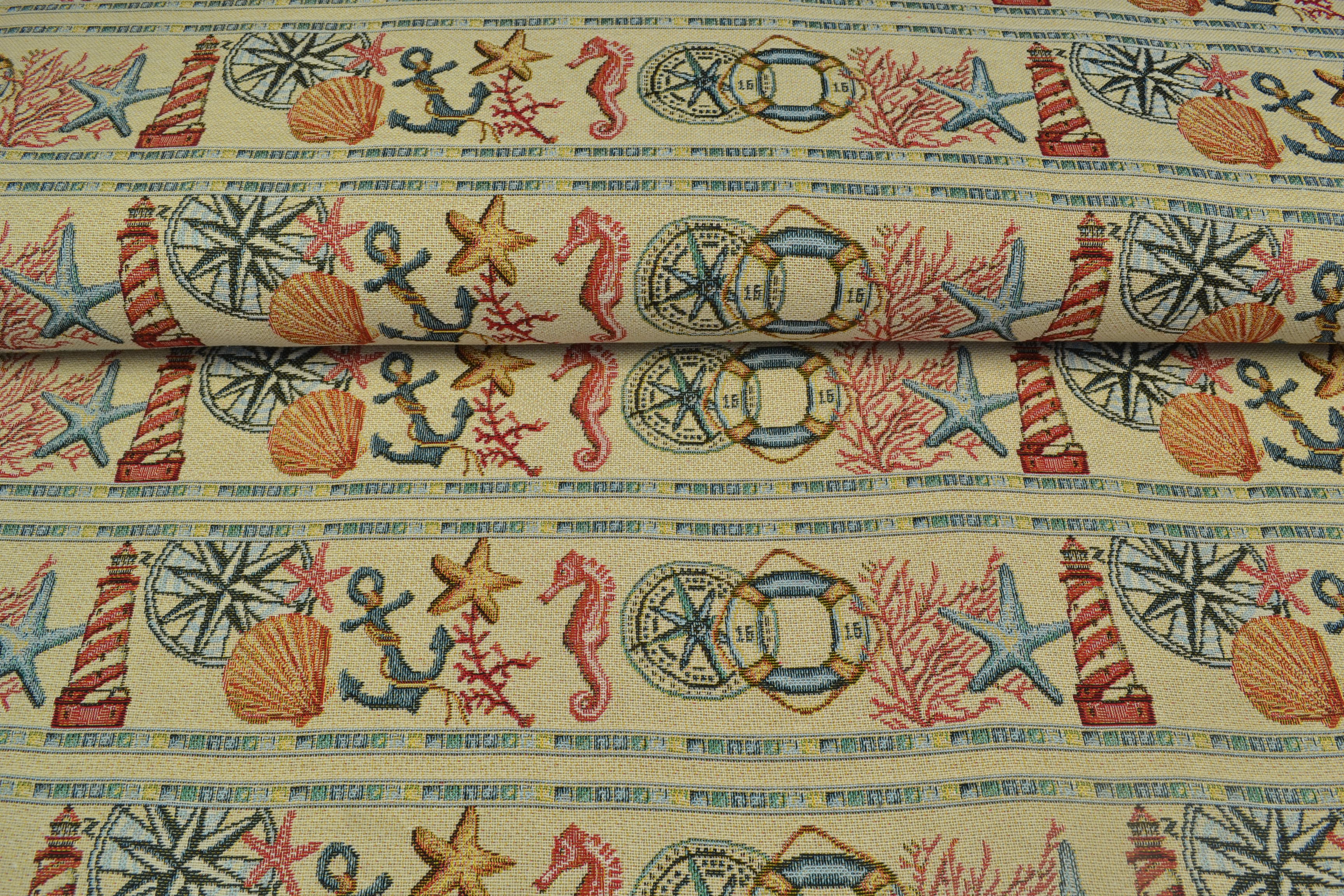 Gobelin Möbelstoff Meeressymbole, bunt