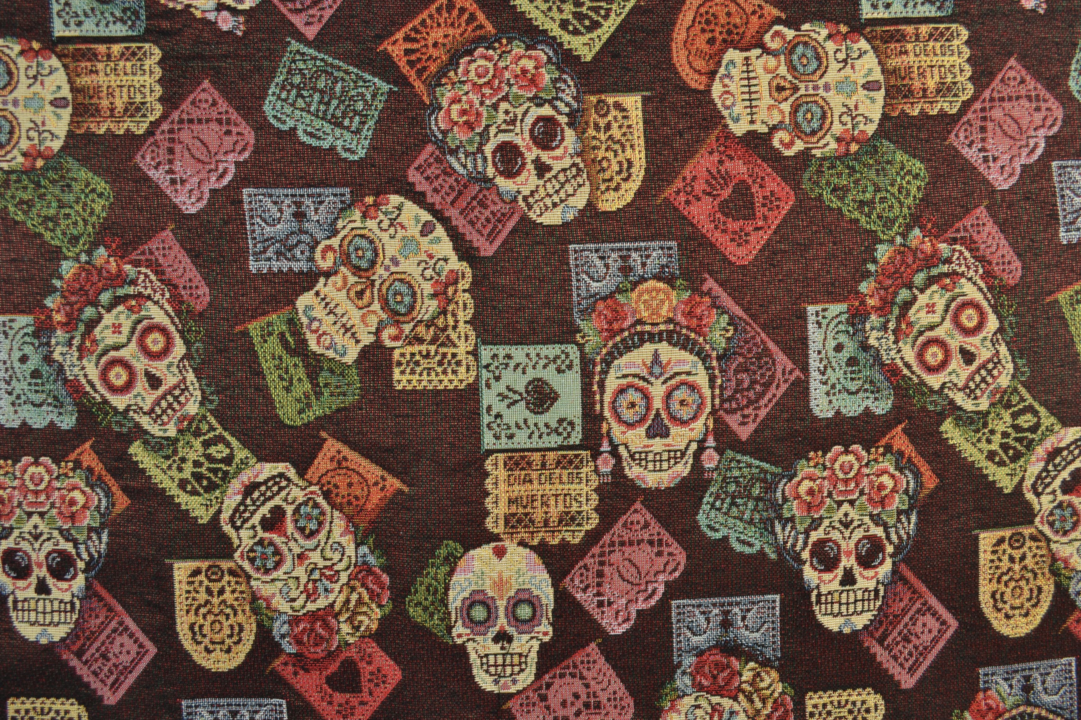 Produktinformationen "Gobelin Möbelstoff Totenköpfe"