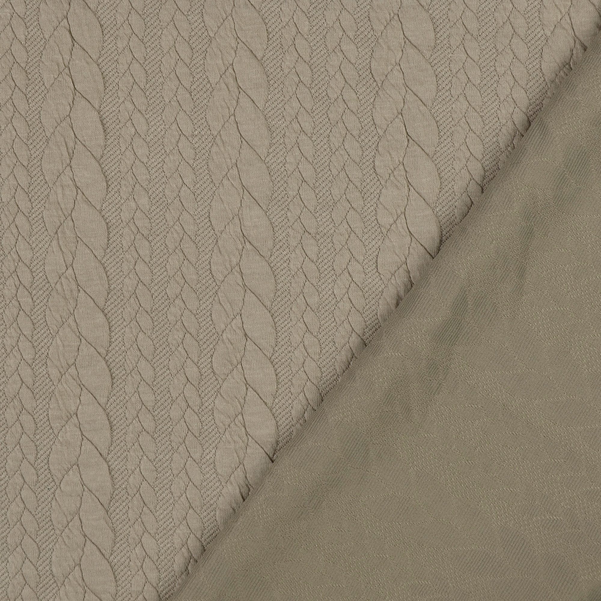 Ein Wohlfühlstoff mit einem wunderschönem Zopstrick. Jacquard Jersey Zopfstrick finden Sie in sämtlichen Farben bei Stoffe Schulz.
