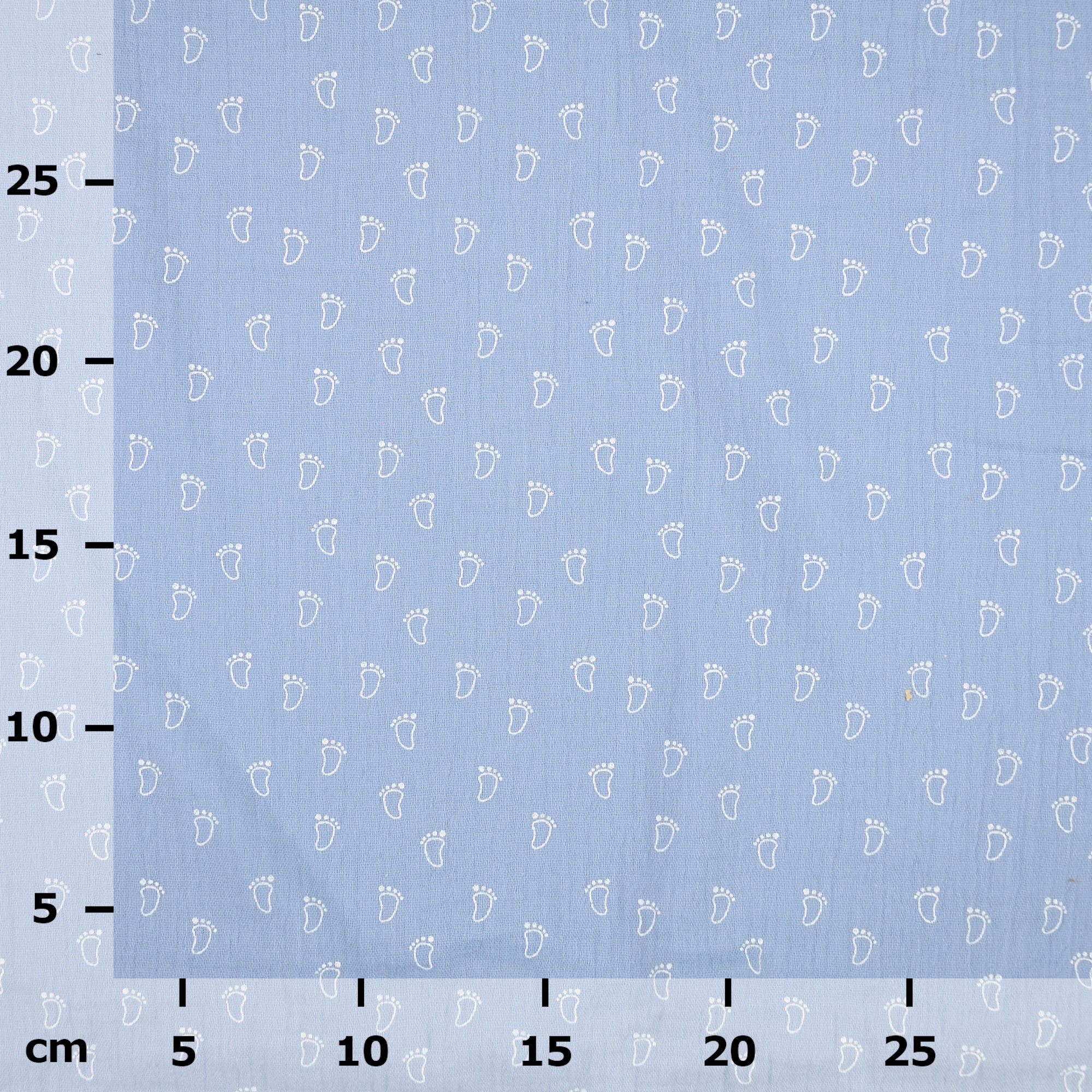 Produktinformationen "Baumwoll Musselin Double Gauze Fußabdruck, hellblau"