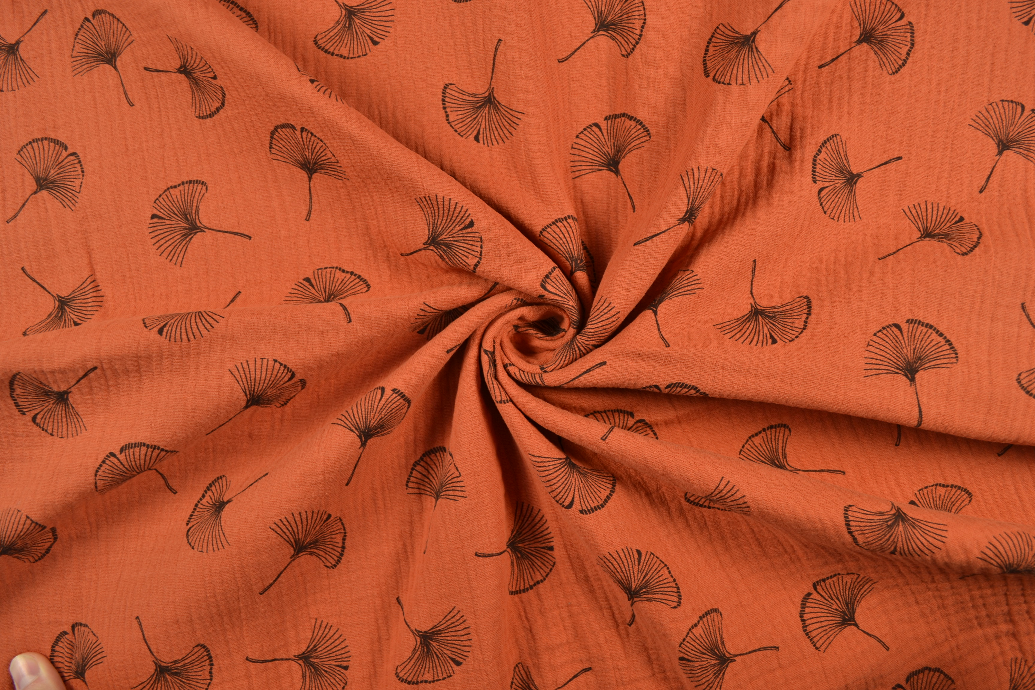 Baumwoll Musselin Double Gauze Gingko, steinrot