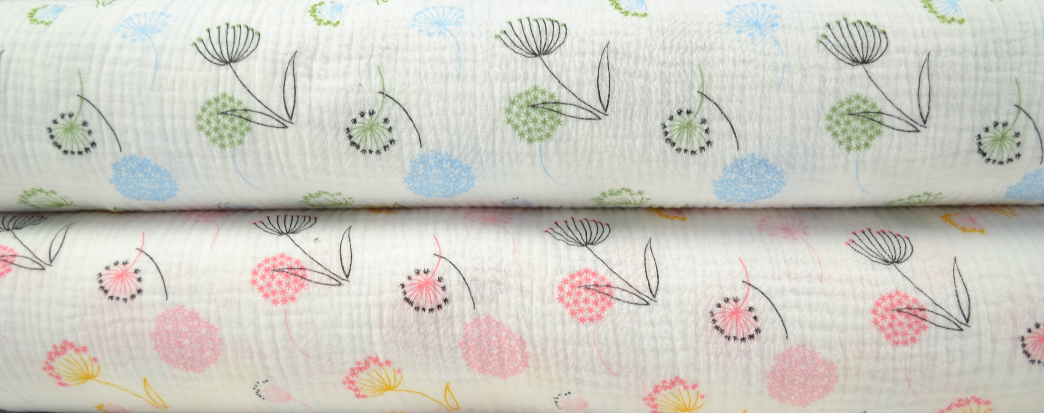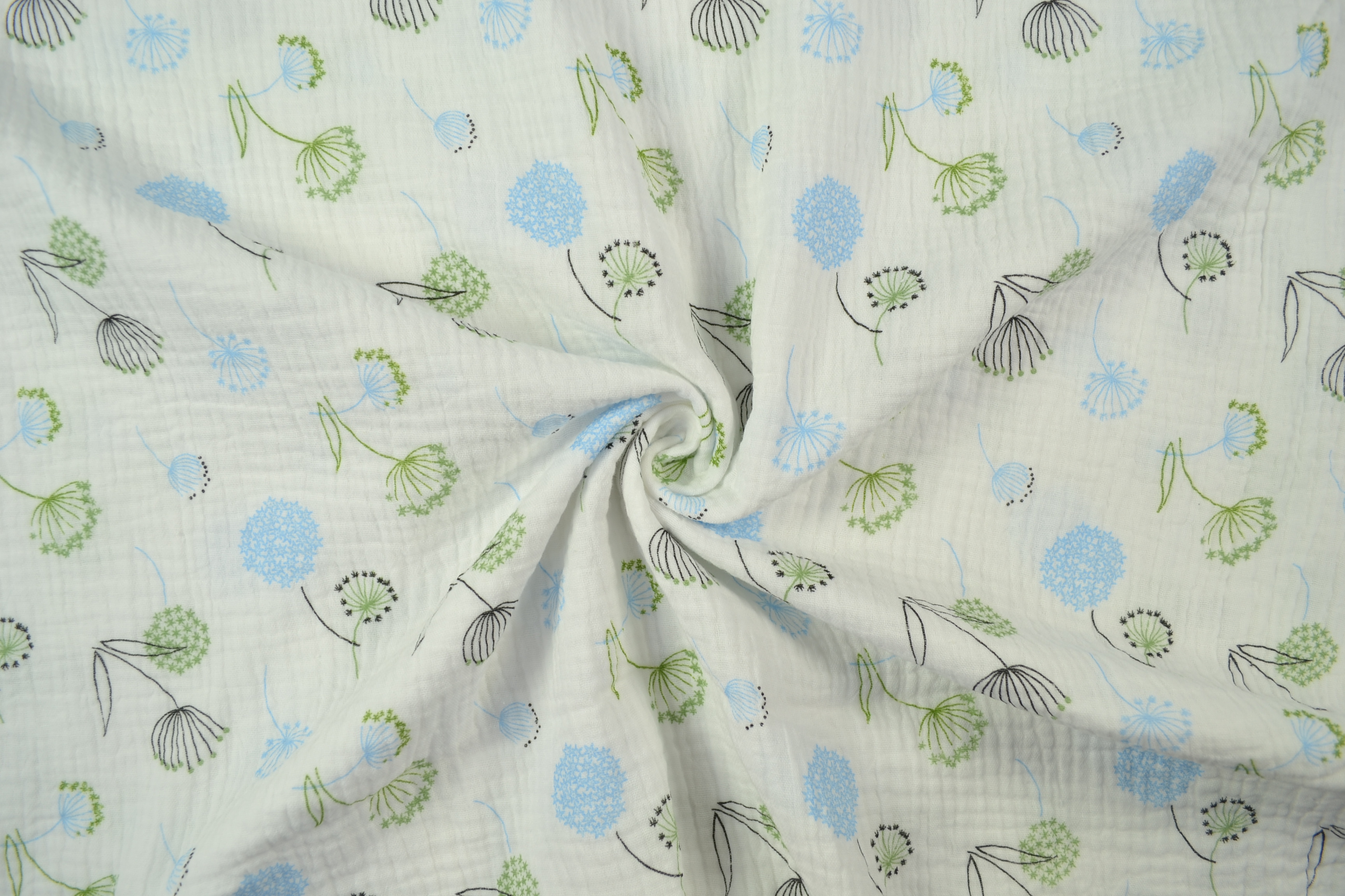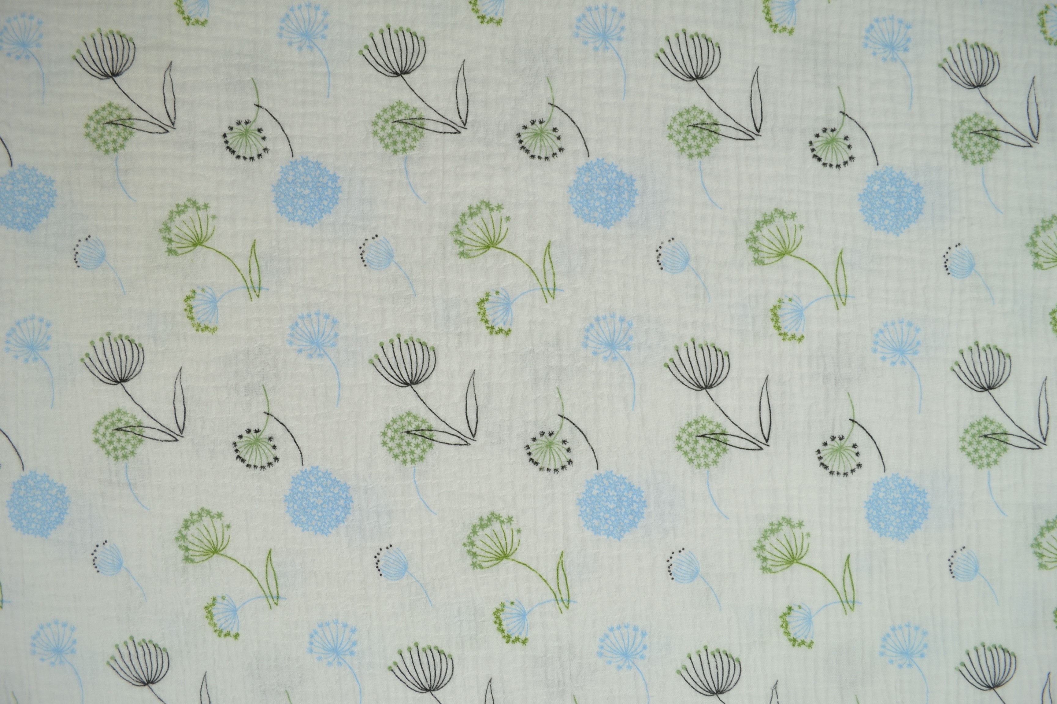 Produktinformationen "Baumwoll Musselin Double Gauze bedruckt, Pusteblume blau/ grün"