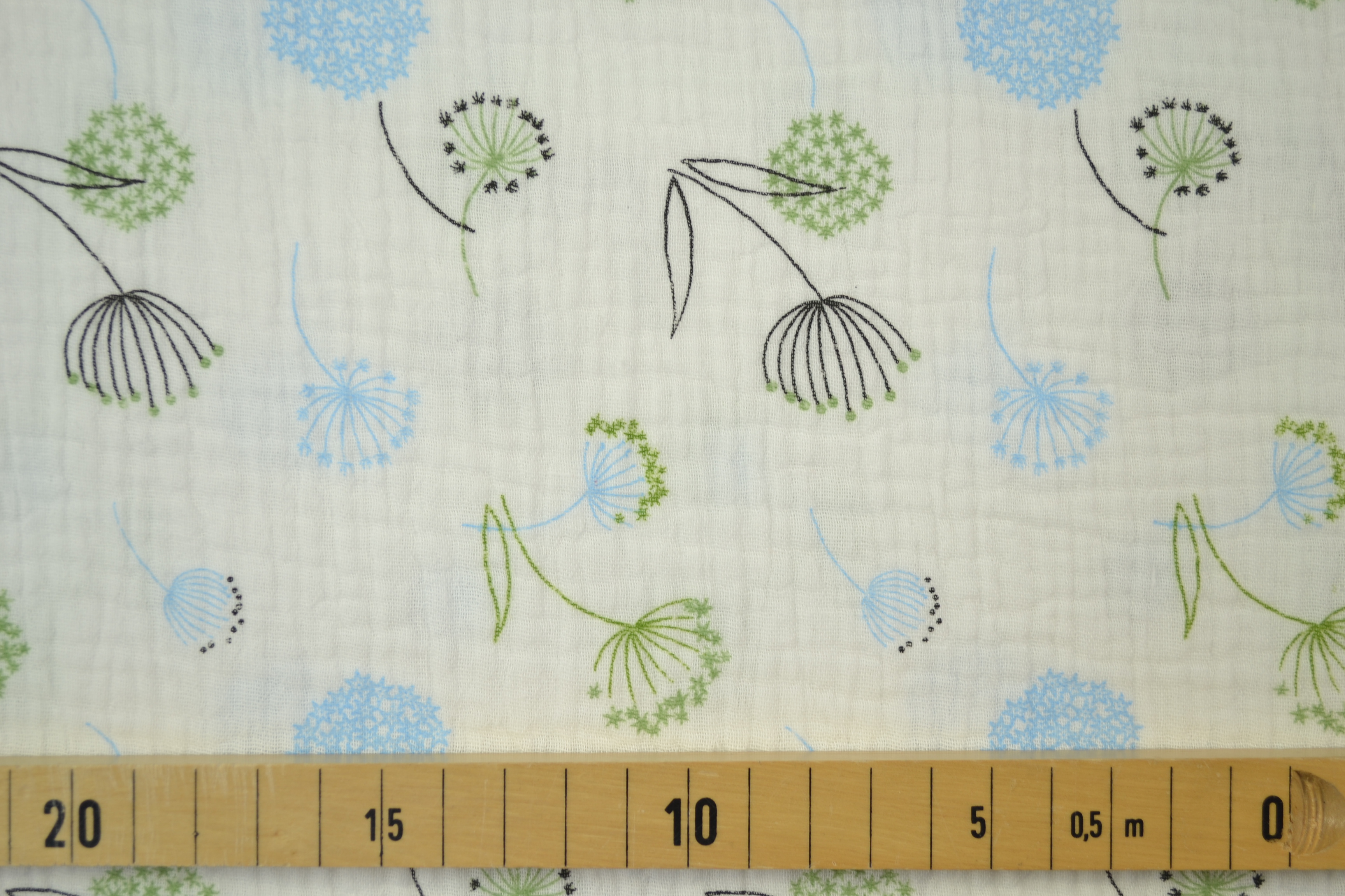 Baumwoll Musselin Double Gauze bedruckt, Pusteblume blau/ grün
