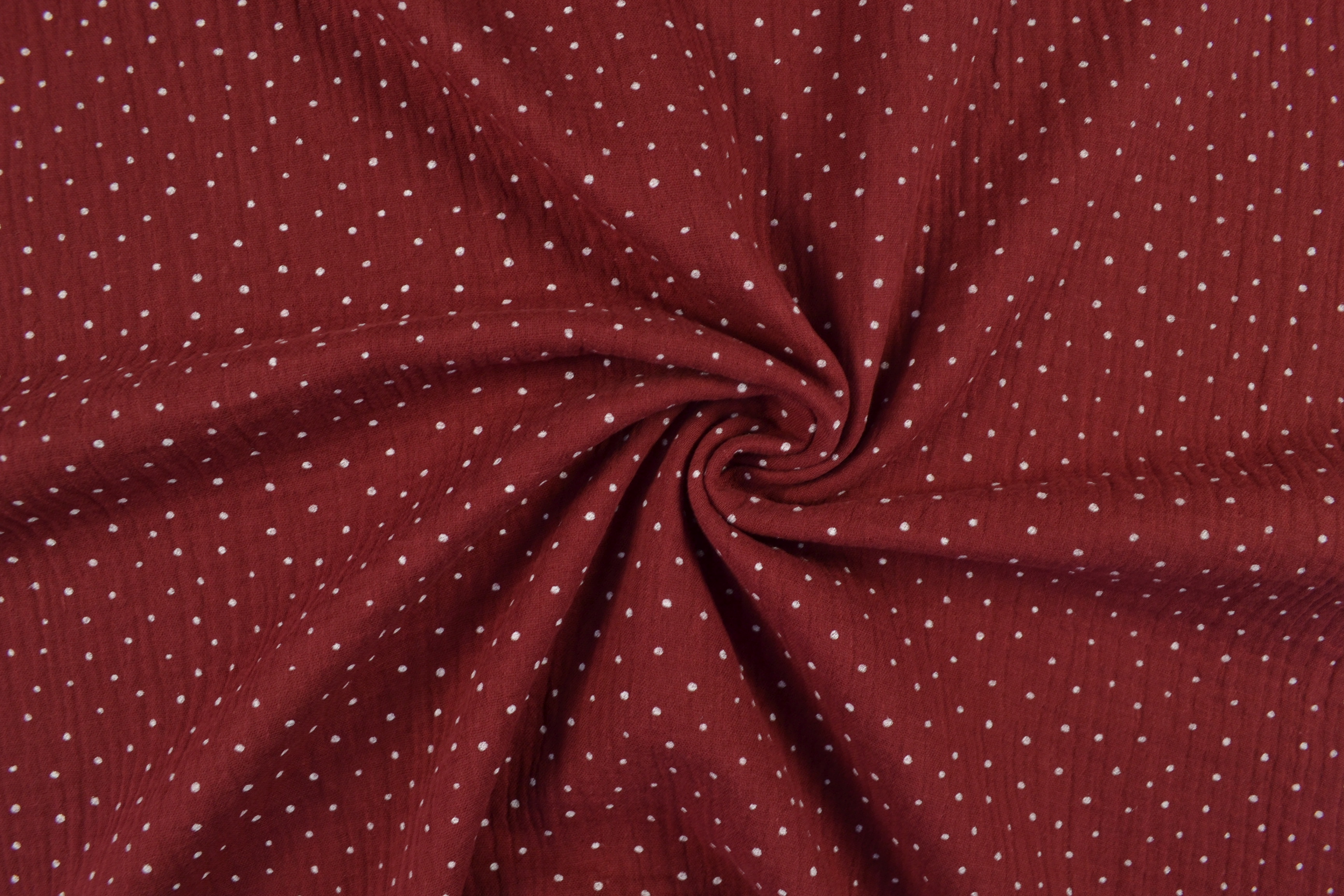 Baumwollstoff Musselin Double Gauze Tupfen, dunkelrot:
