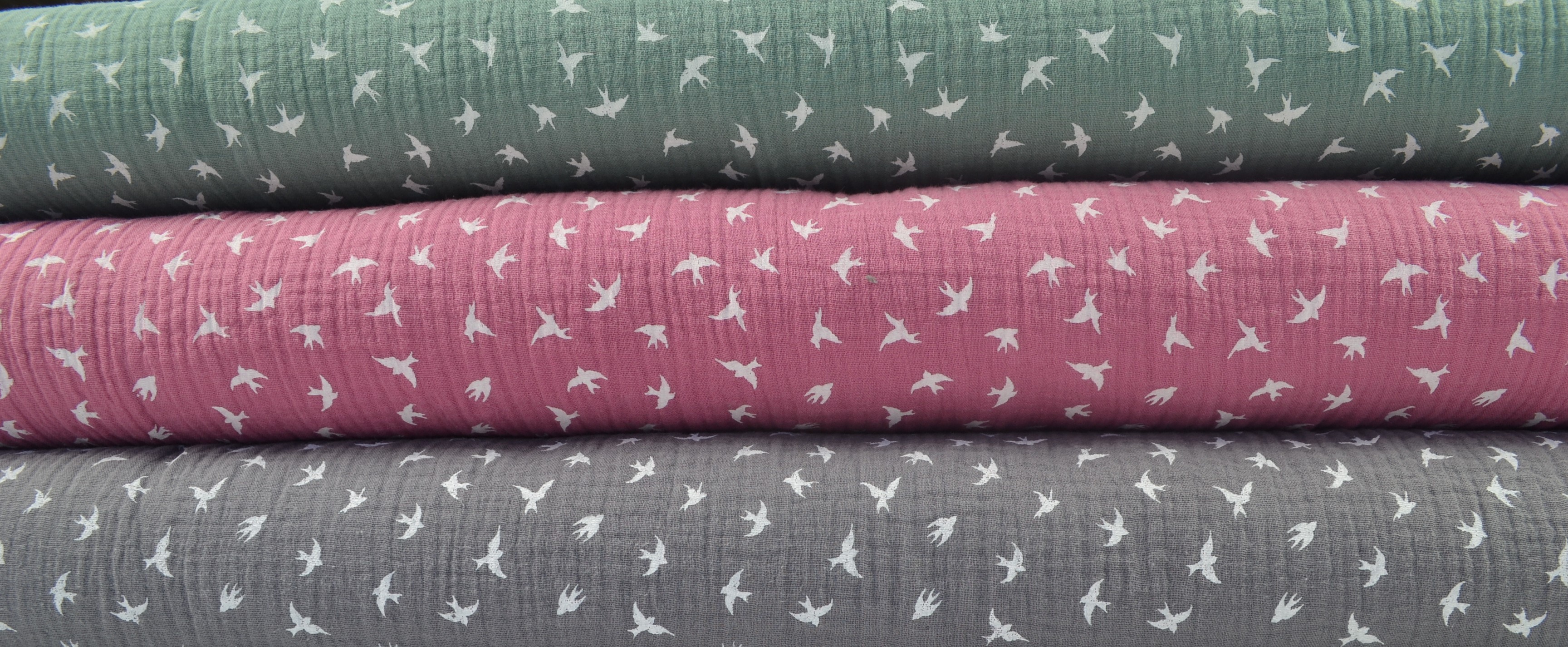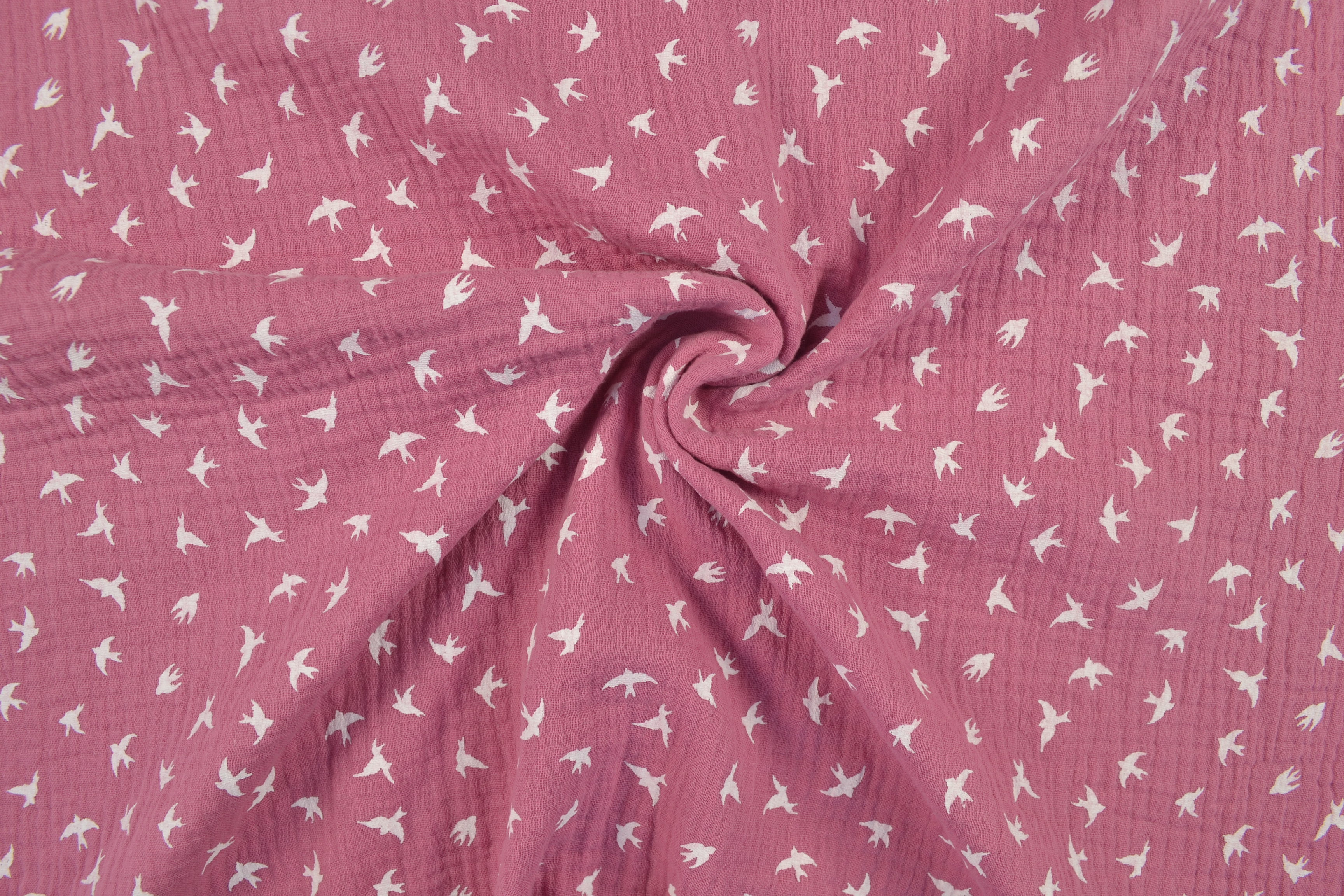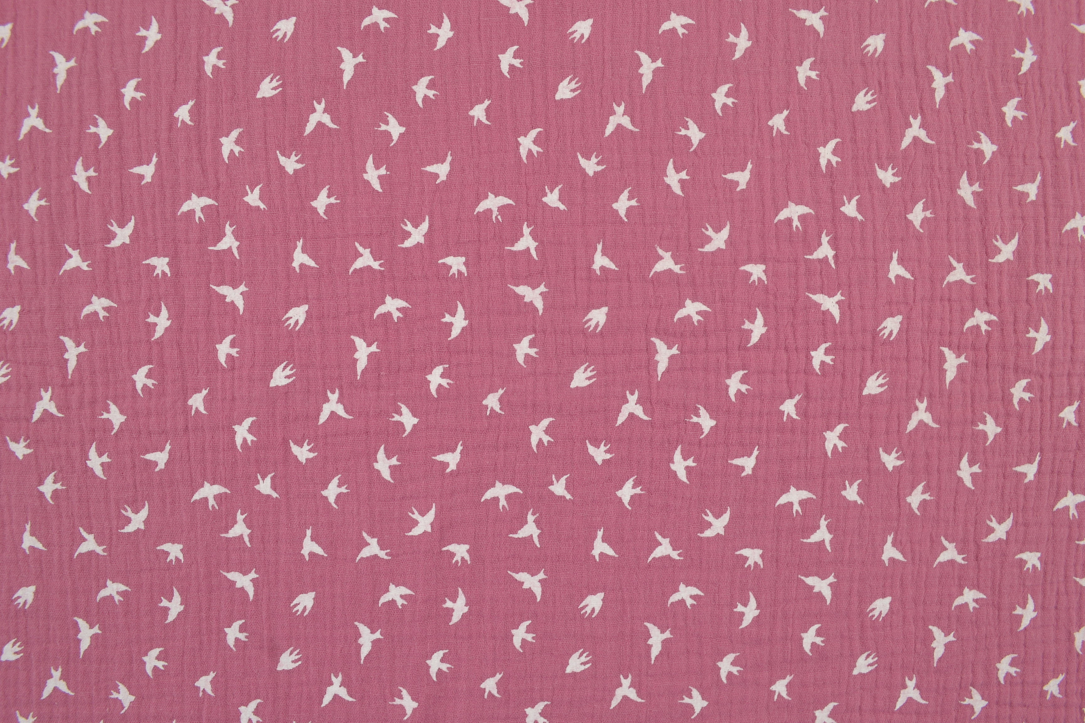 Baumwollstoff Musselin Double Gauze kleine Vögel, pink: