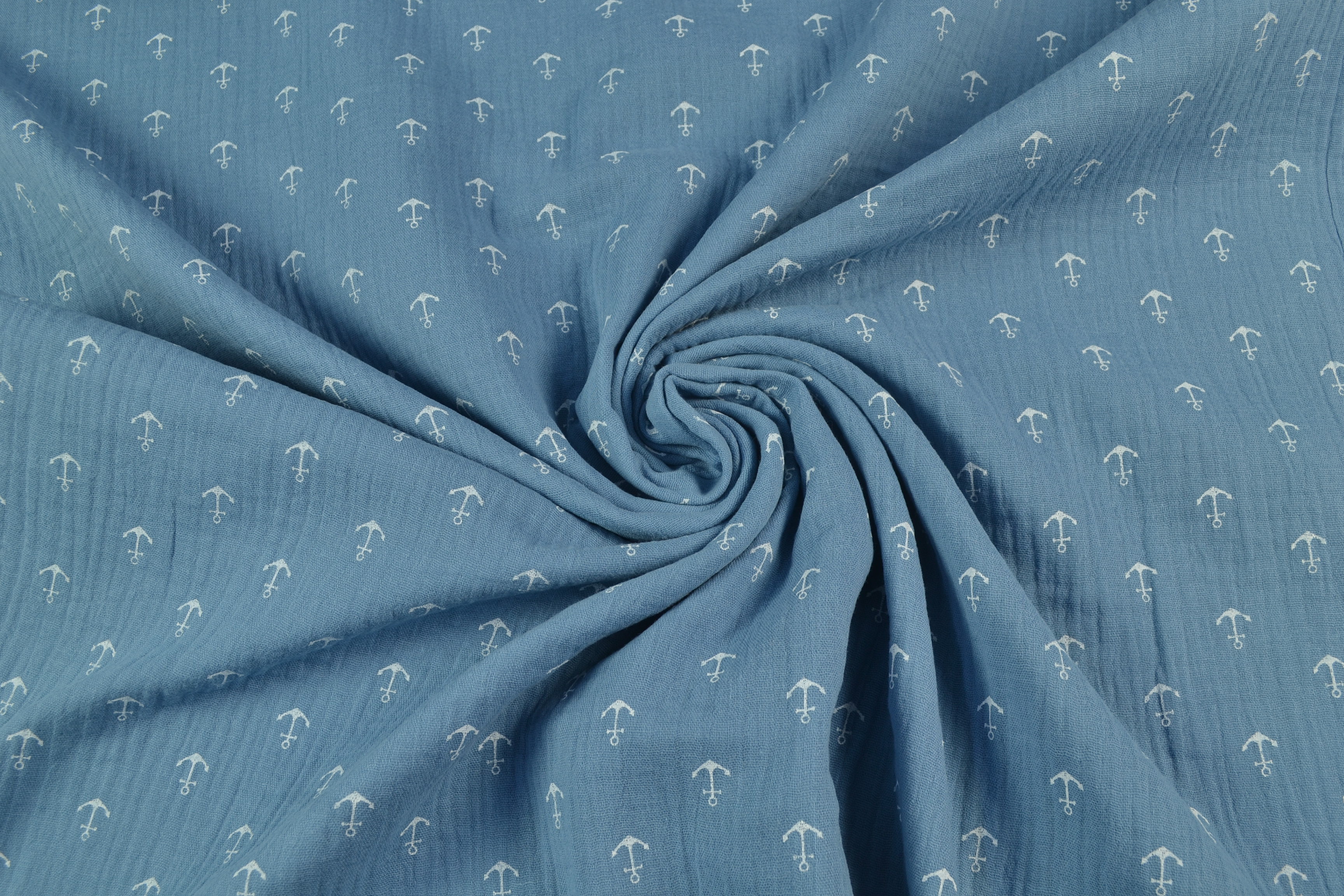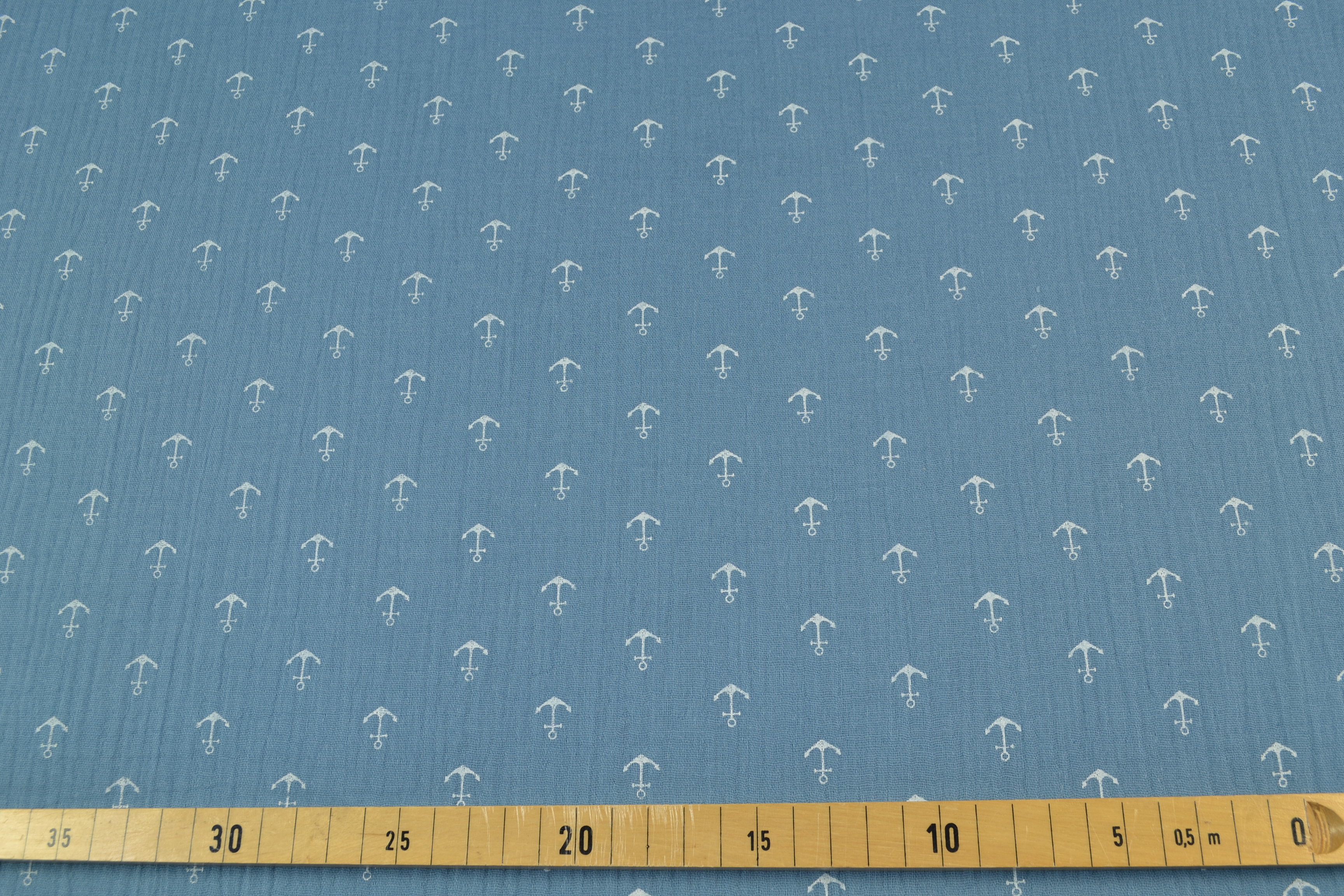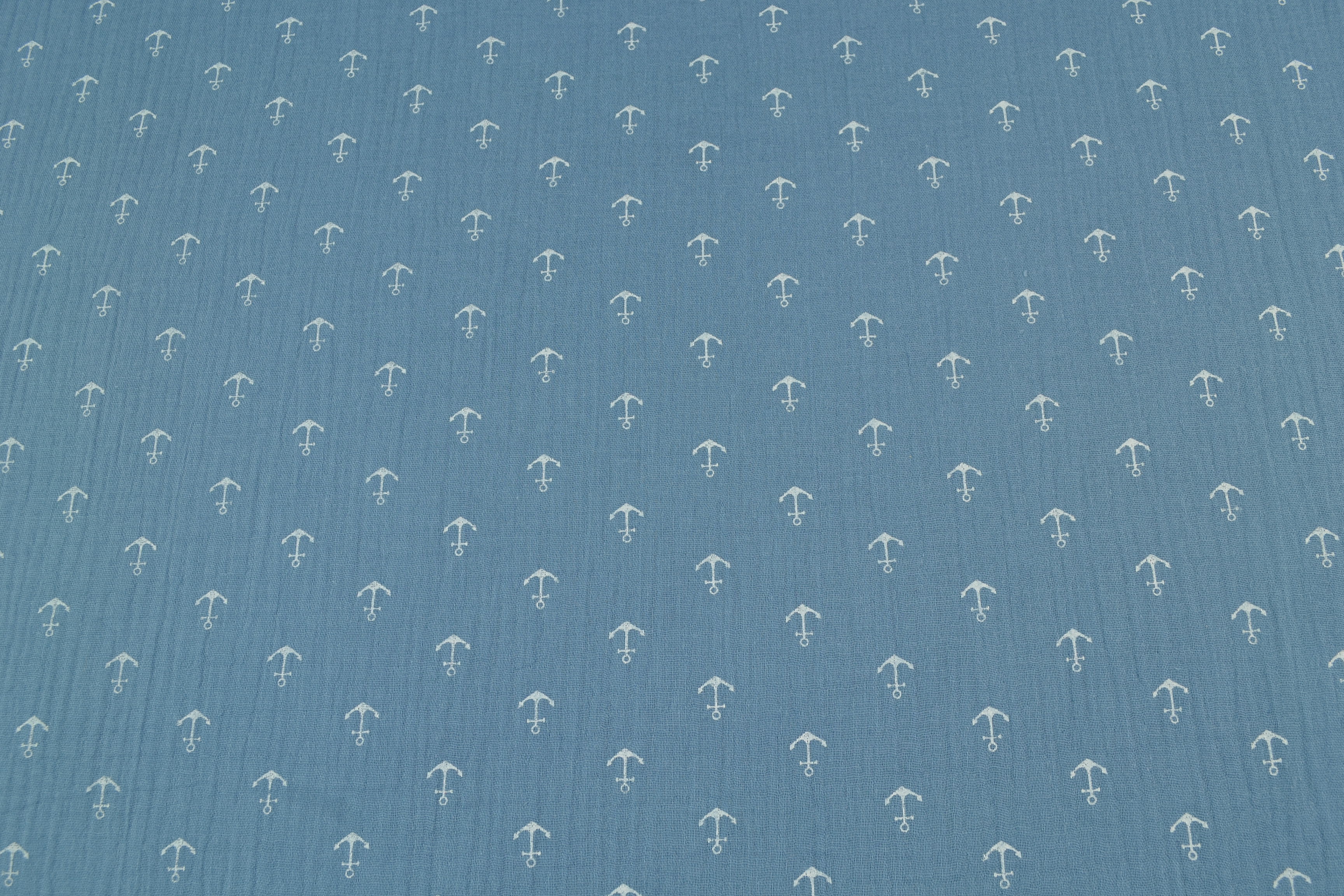 Baumwollstoff Musselin Double Gauze kleine Anker, blau: