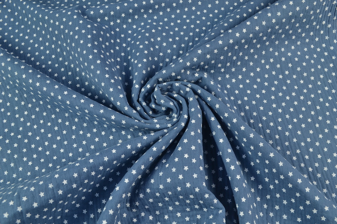 Baumwollstoff Musselin Double Gauze bedruckt, Sterne blau: