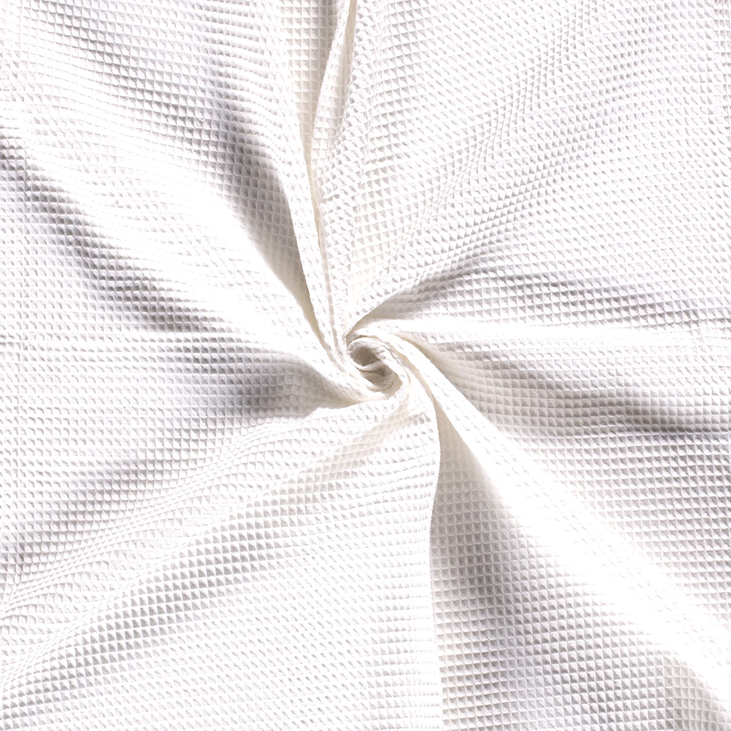 Schöner Waffelpiqué mit einer Strukturoberfläche. Waffelpiqué Stoff ist geeignet für Bademäntel, Handtücher, Baby-Accessoires, Heim-Deko aber auch für Kleidung und Accessoires. Der Stoff ist angenehm weich und griffig und kann viel Feuchtigkeit absorbieren.