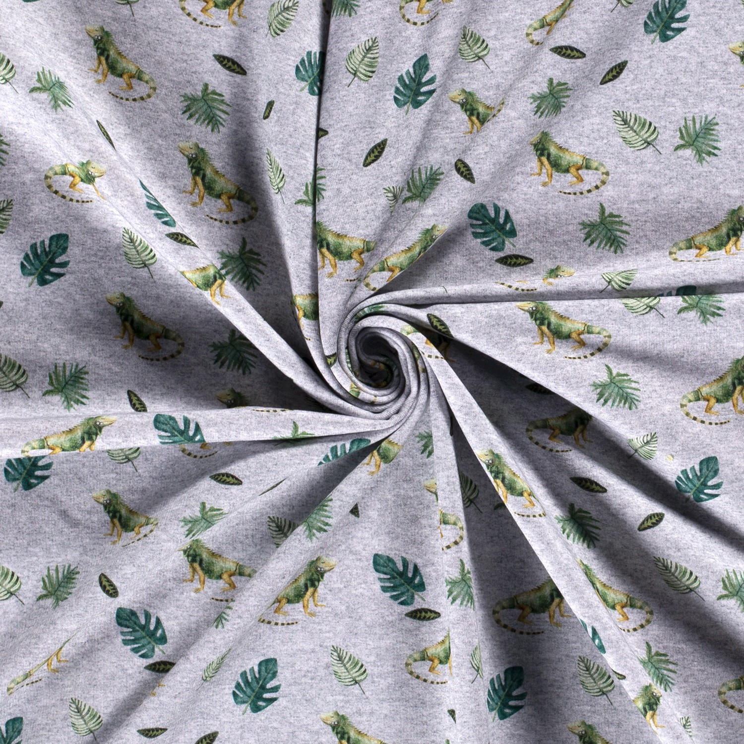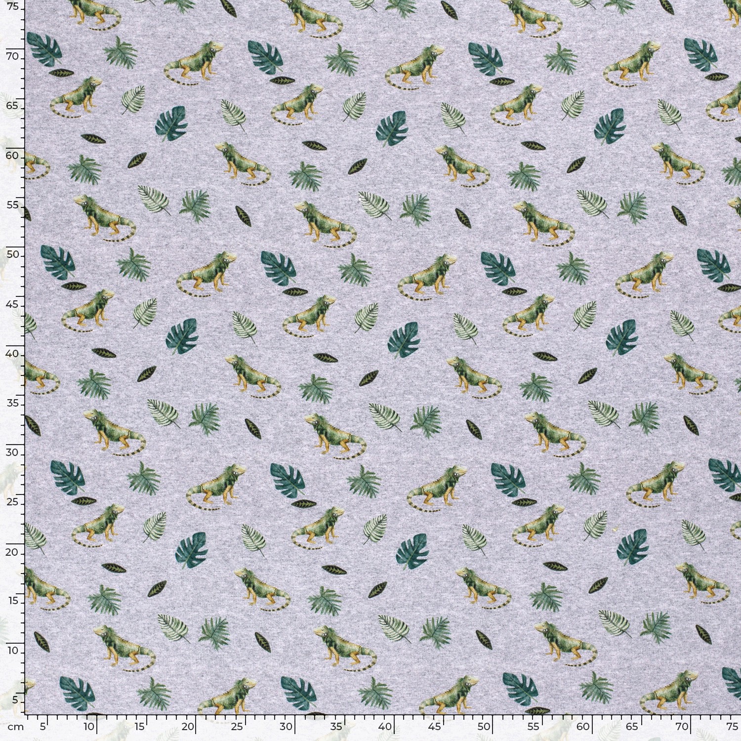 Sweat Shirt Stoff Digitaldruck Blätter, grau
