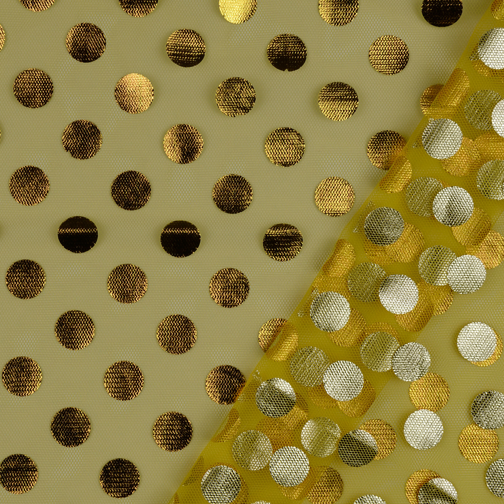 Produktinformationen "Soft Tüll Folienprint Tupfen, gelb"